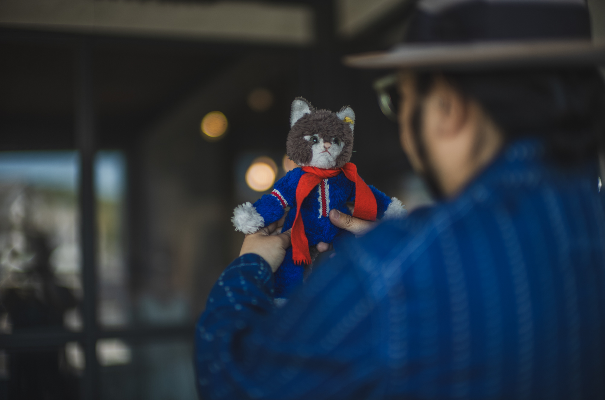 The fabric is a unique combination: a heart-patterned stripe inspired by vintage Carhartt archives, blended with a touch of cat paw prints.