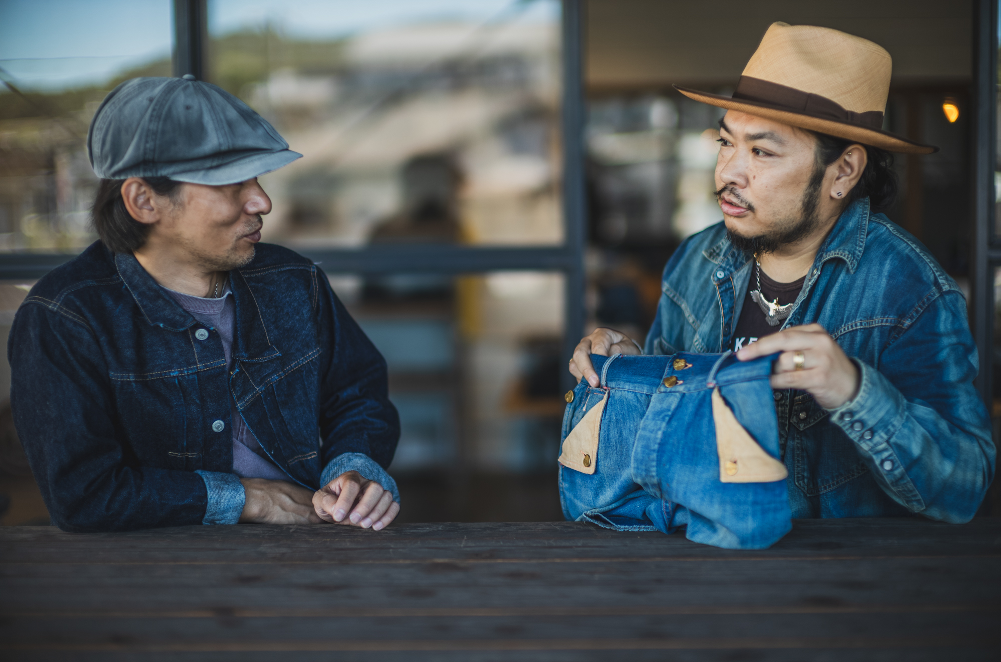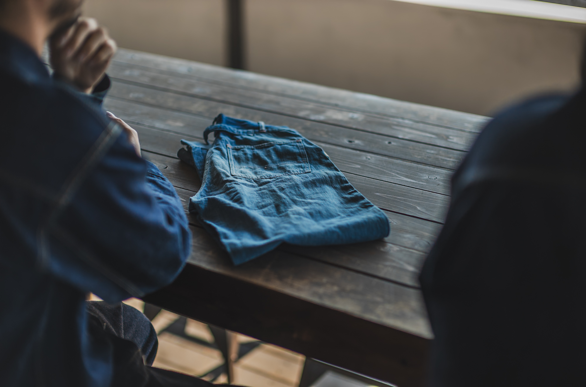 暑い季節では有るけど1番生地の色や縫製の仕様が確認しやすいデッキスペースで確認するのが私と工場長の2人の合図