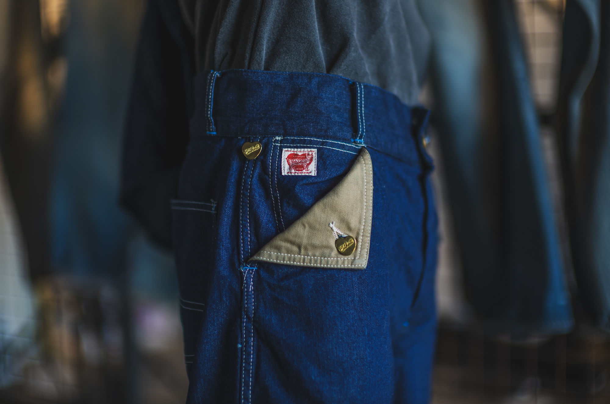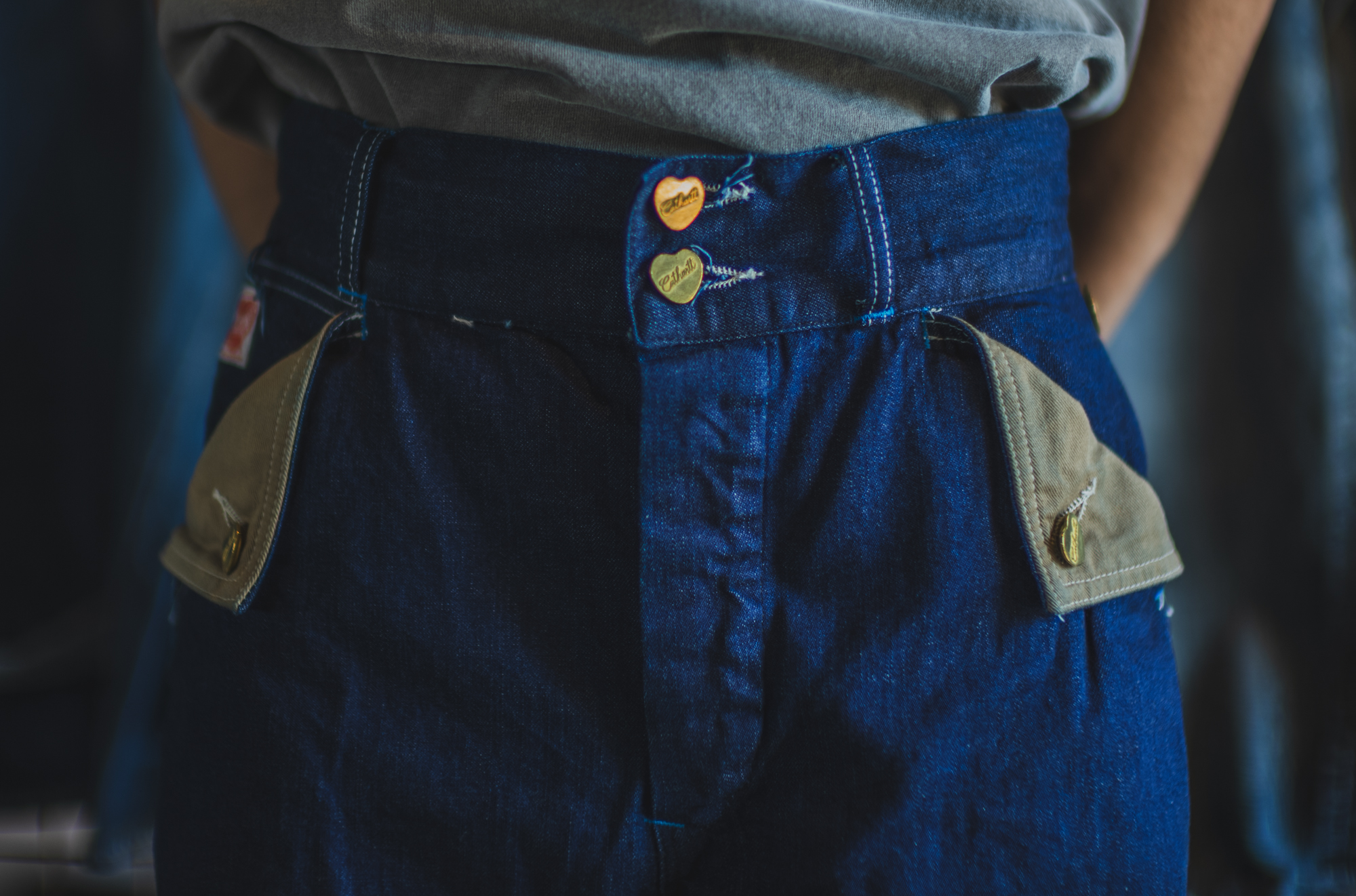ハート型の打ち込みボタン、そしてMule Ear Pocketsという、通常のペインターパンツとはひと味違うディテールを再現できたから。