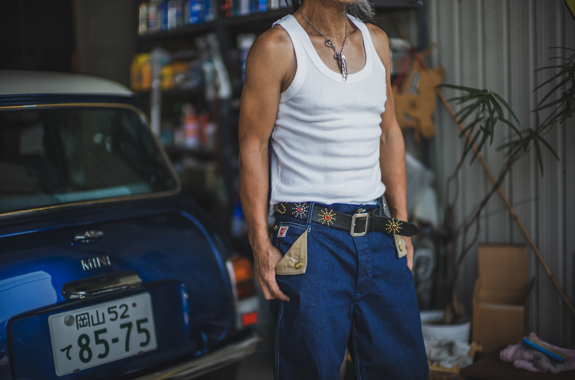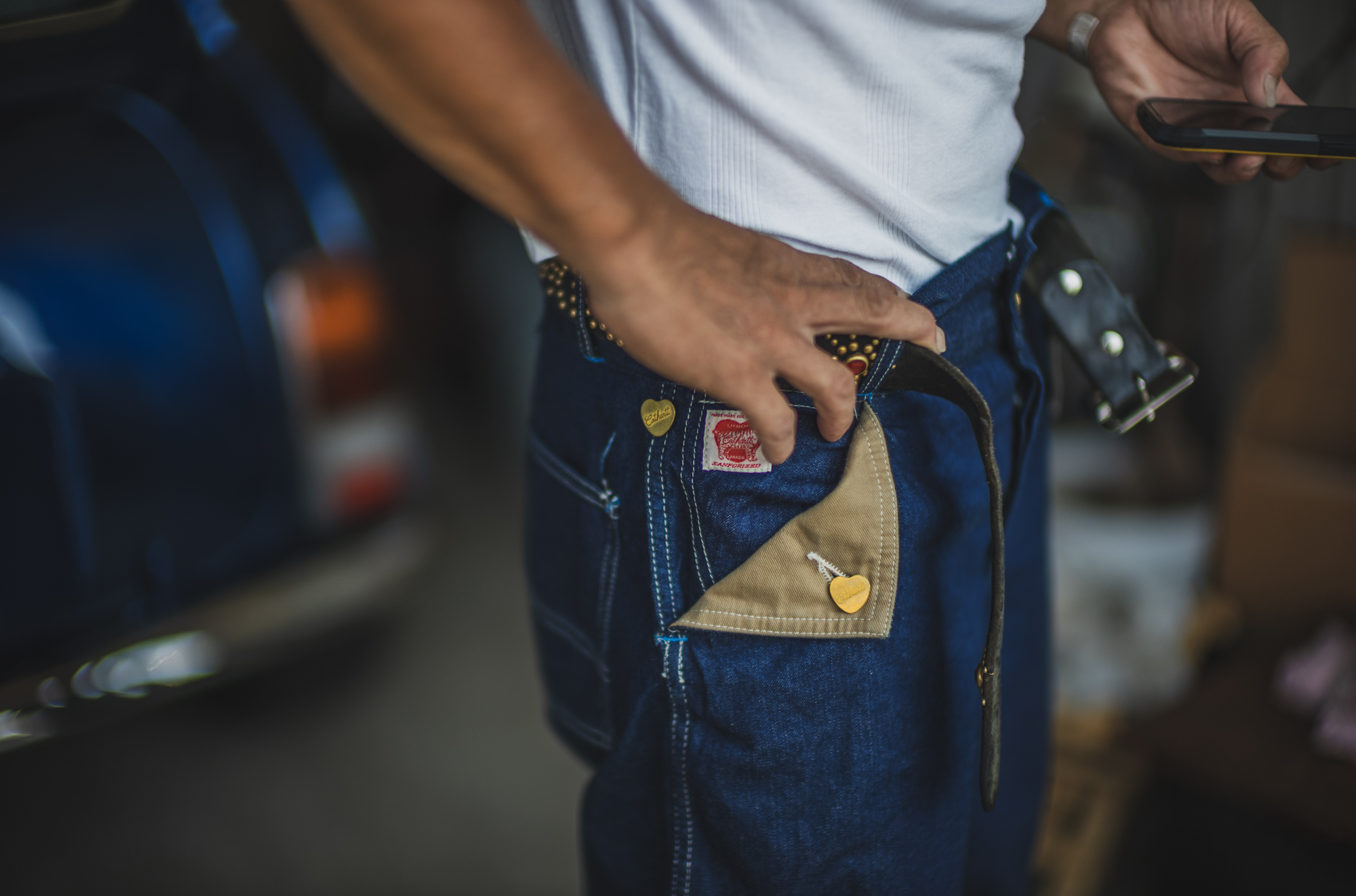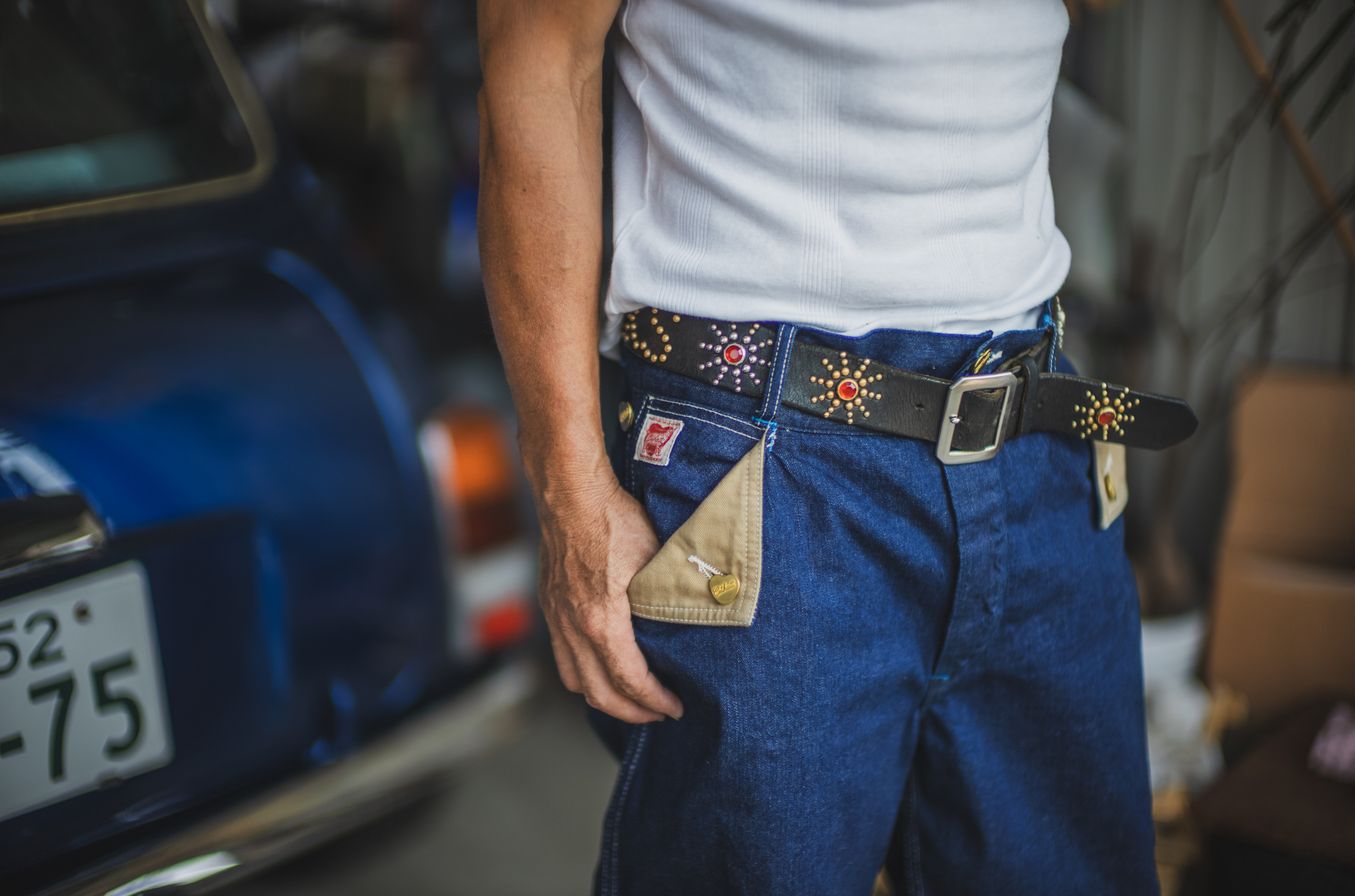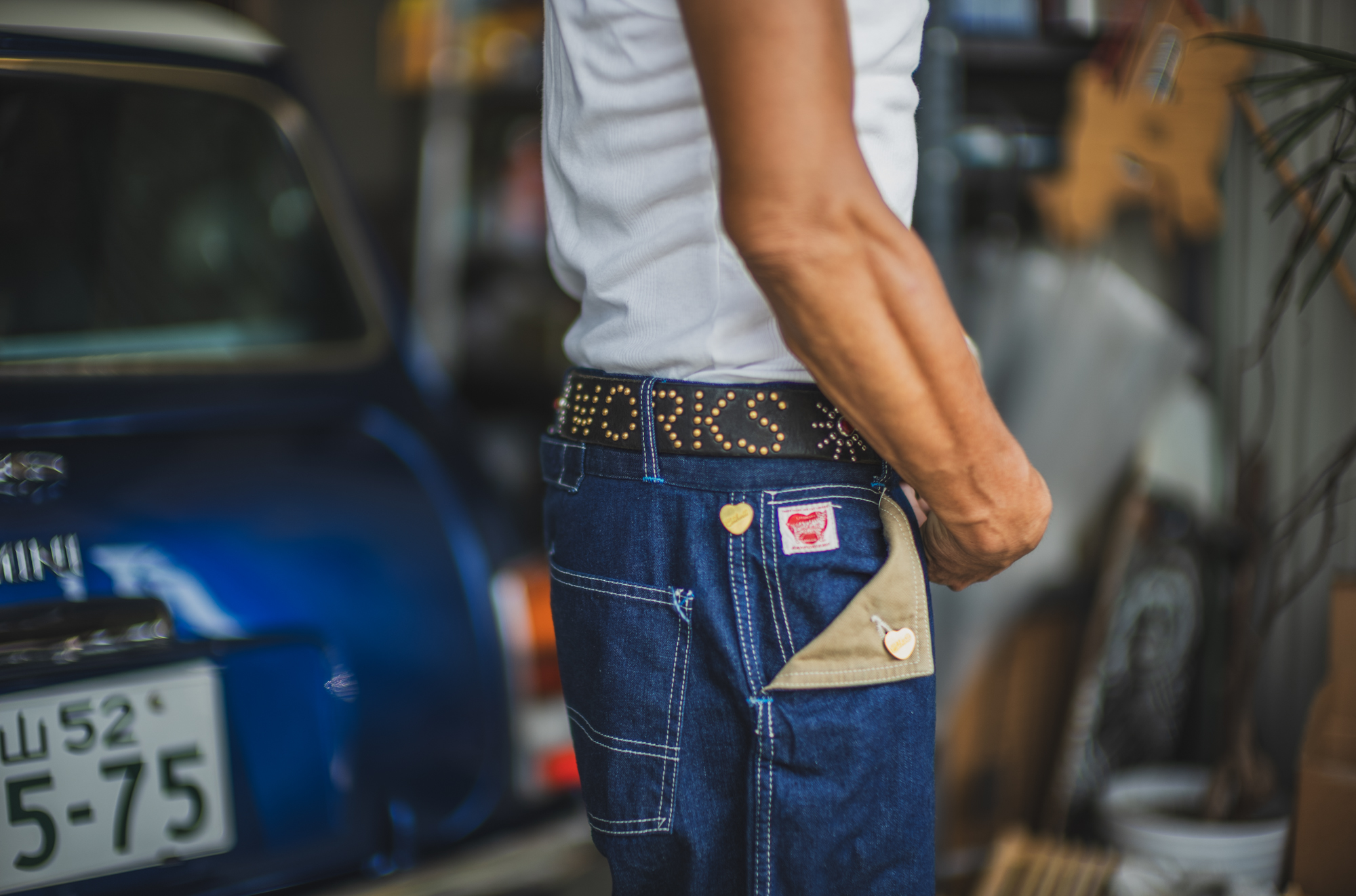 今日はいつもTCBを穿いてガレージワークをしてくれてるKiriyamaさんに着用して頂きました。