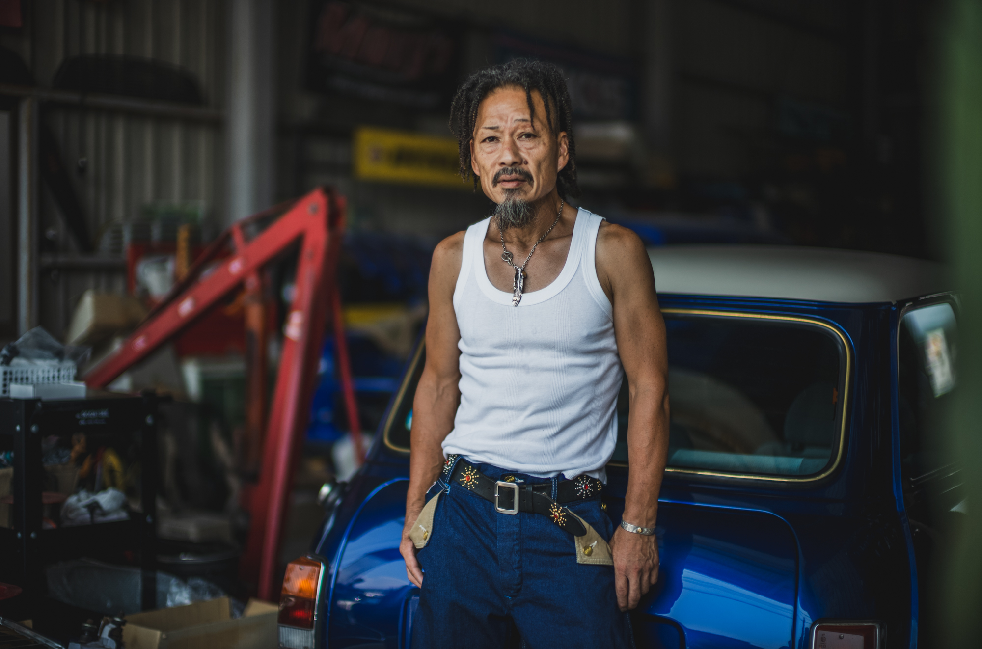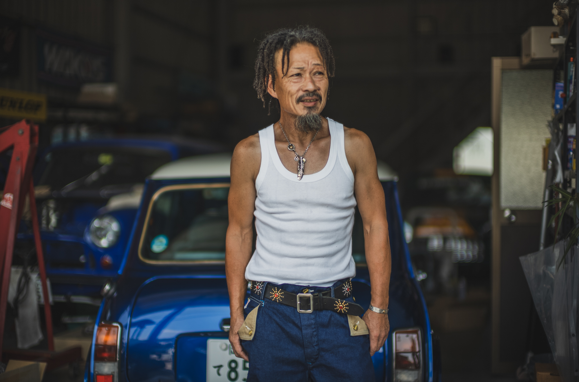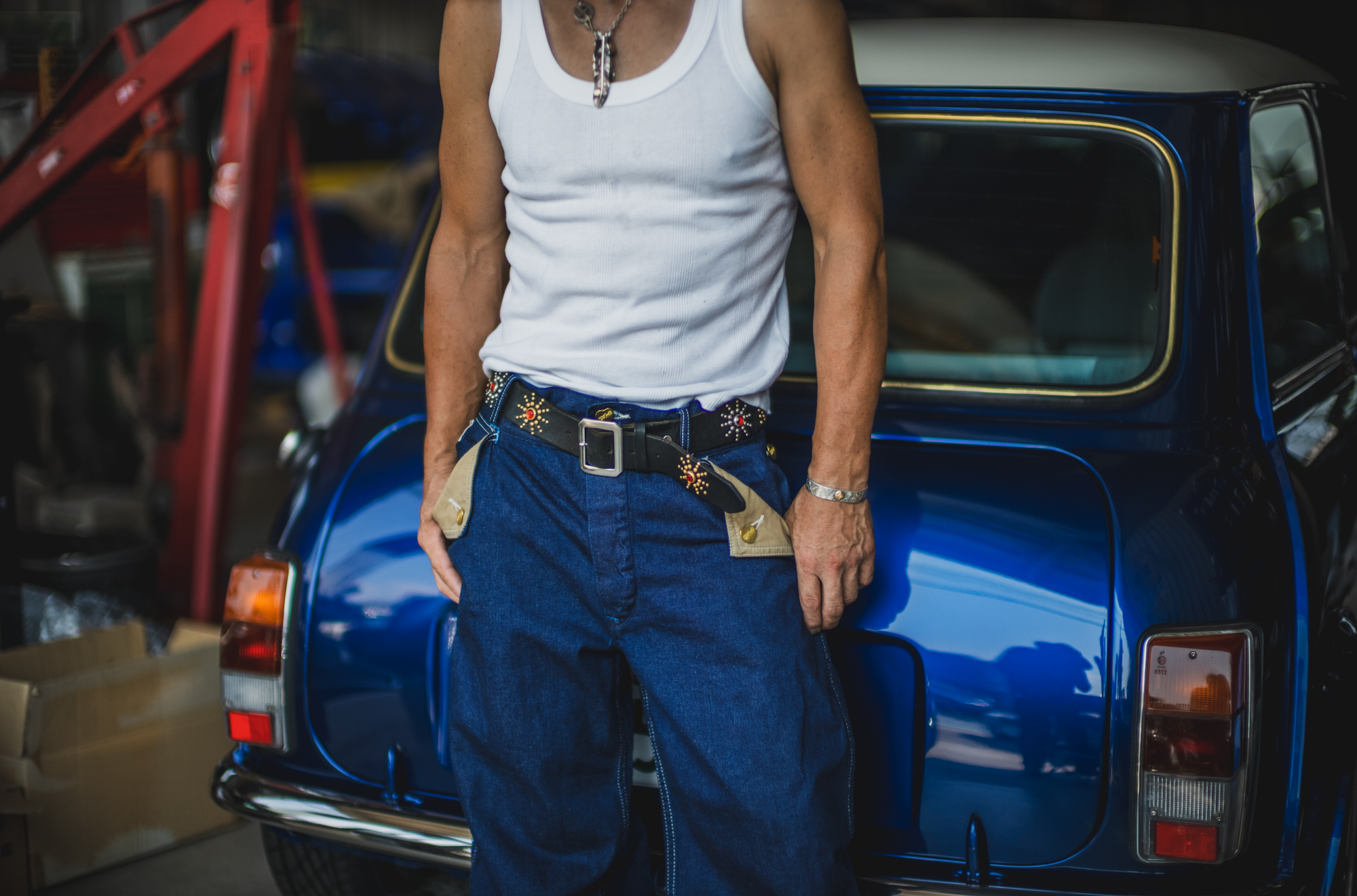 今日はいつもTCBを穿いてガレージワークをしてくれてるKiriyamaさんに着用して頂きました。