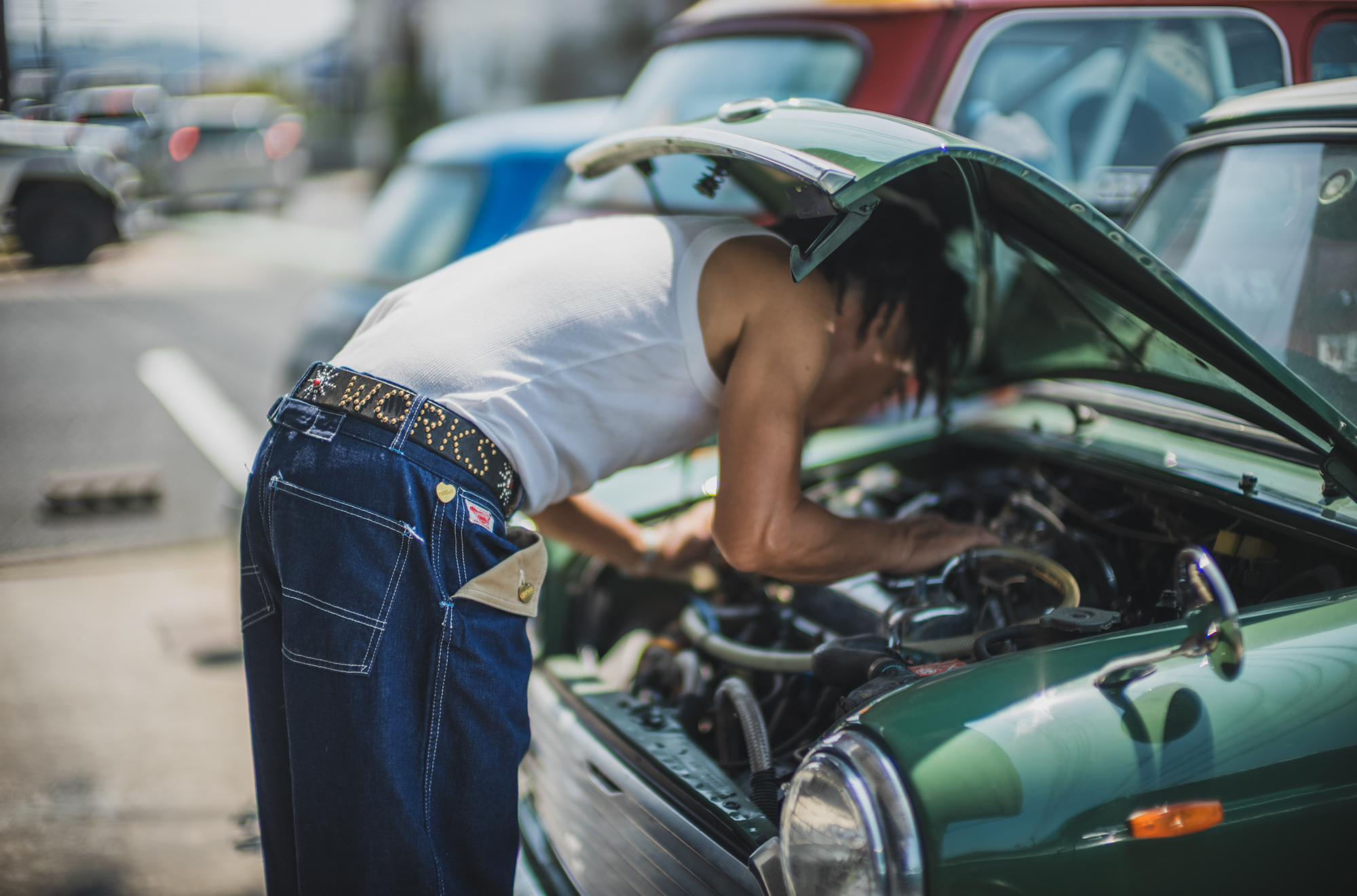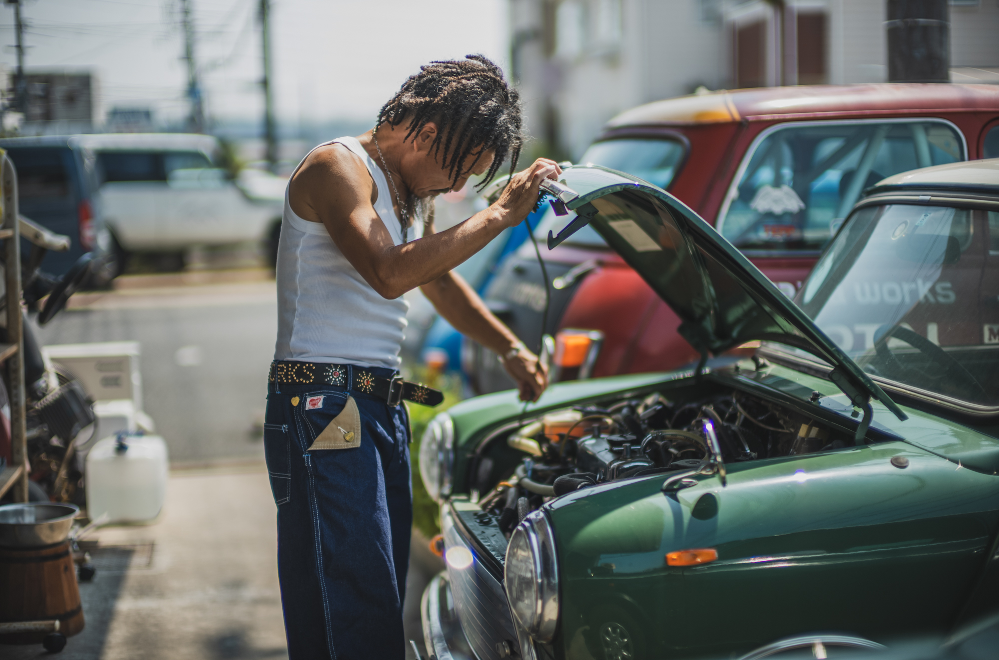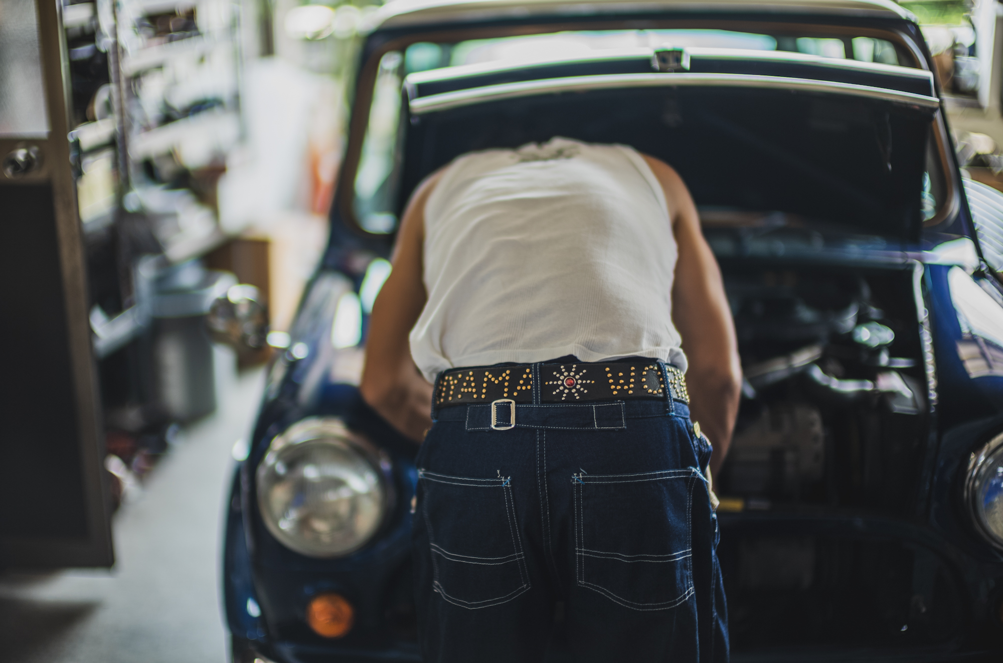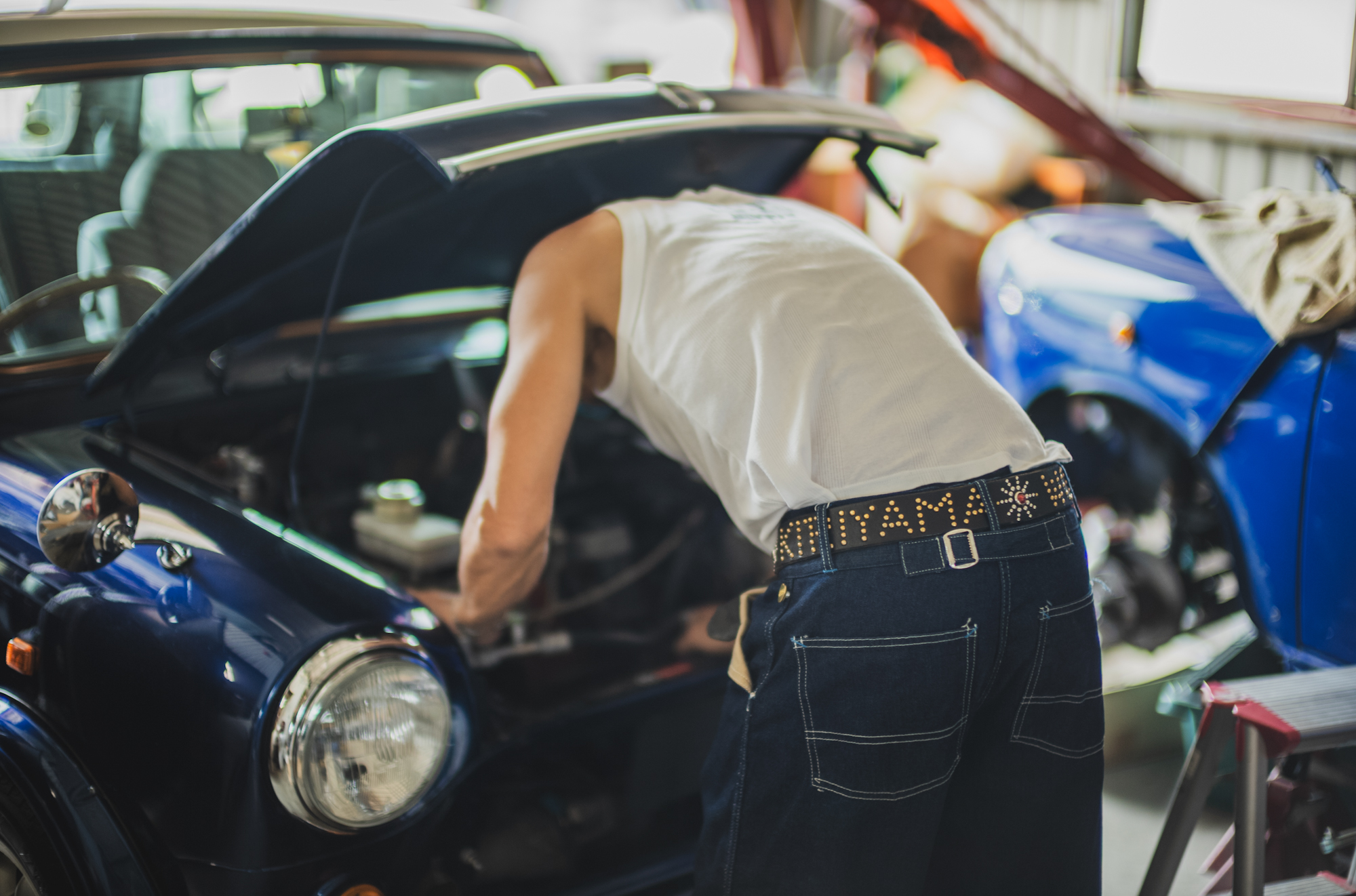 今日はいつもTCBを穿いてガレージワークをしてくれてるKiriyamaさんに着用して頂きました。