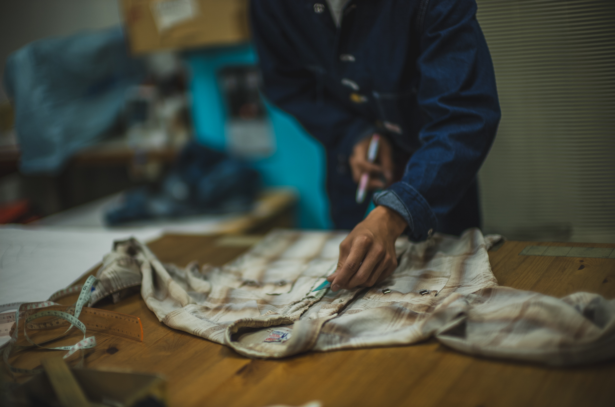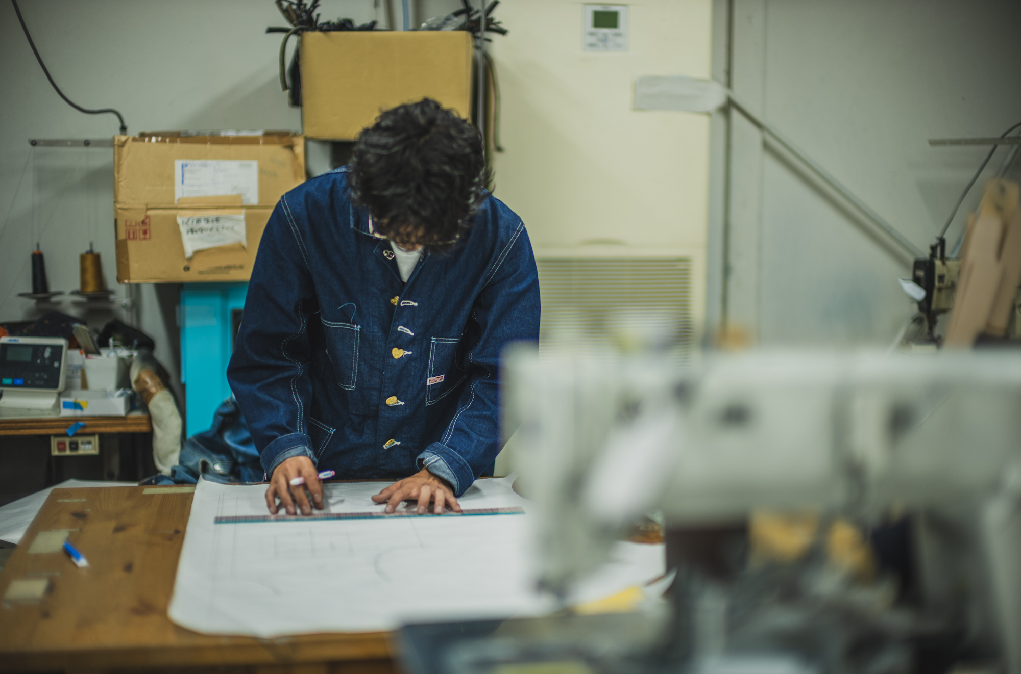 Looking over, I saw Mizoguchi practicing on his own, drafting a pattern based on a vintage western shirt.