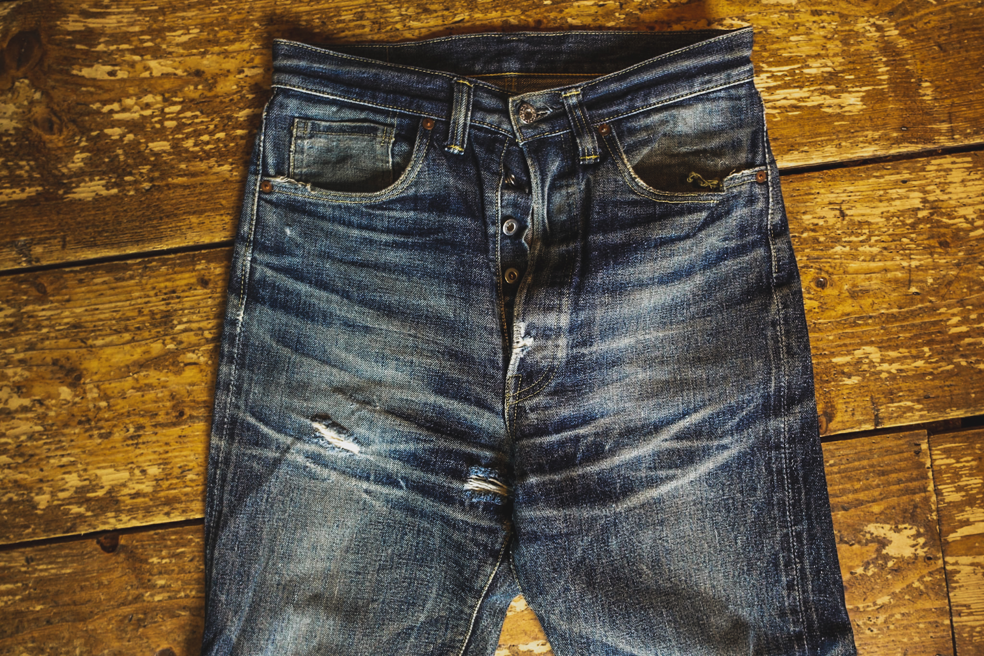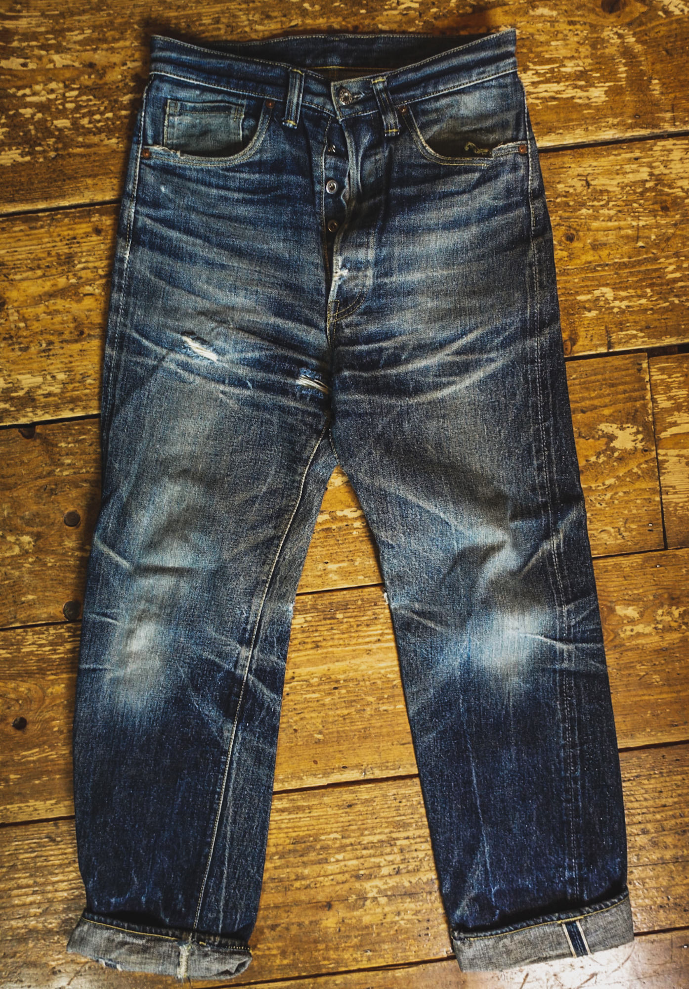 Paul Trynka — the author behind the biographies of The Beatles, The Rolling Stones, and David Bowie, as well as books on the history of denim — sent us some amazing photos of his beautifully faded TCB S40’s.