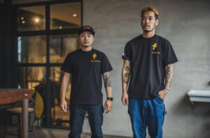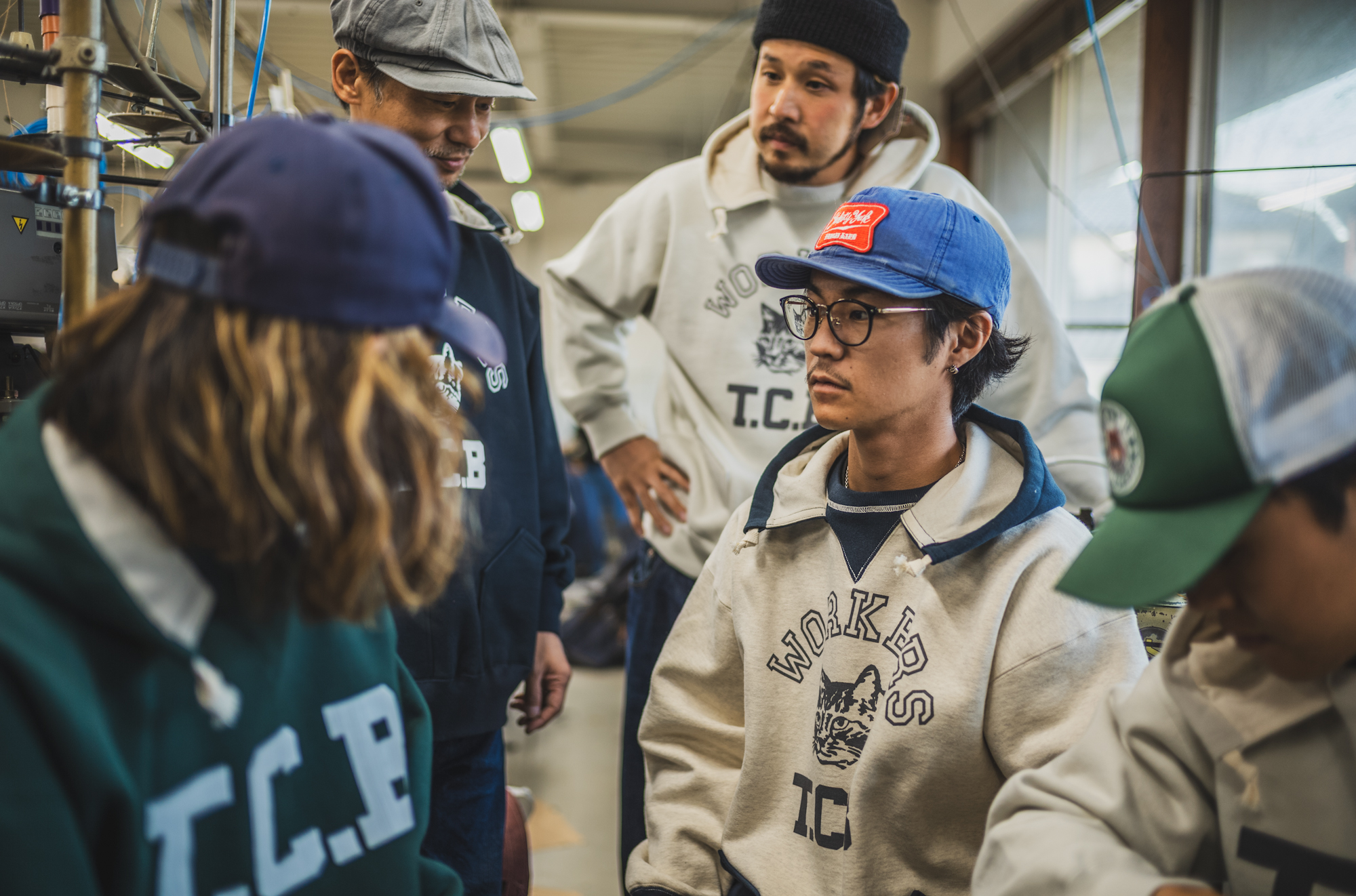 ミリタリー物やカレッジ物のCREW感を演出したくてStaffに着用して貰って撮影 To capture the “crew vibe” inspired by military and college wear, we had our staff wear the pieces for this shoot.
