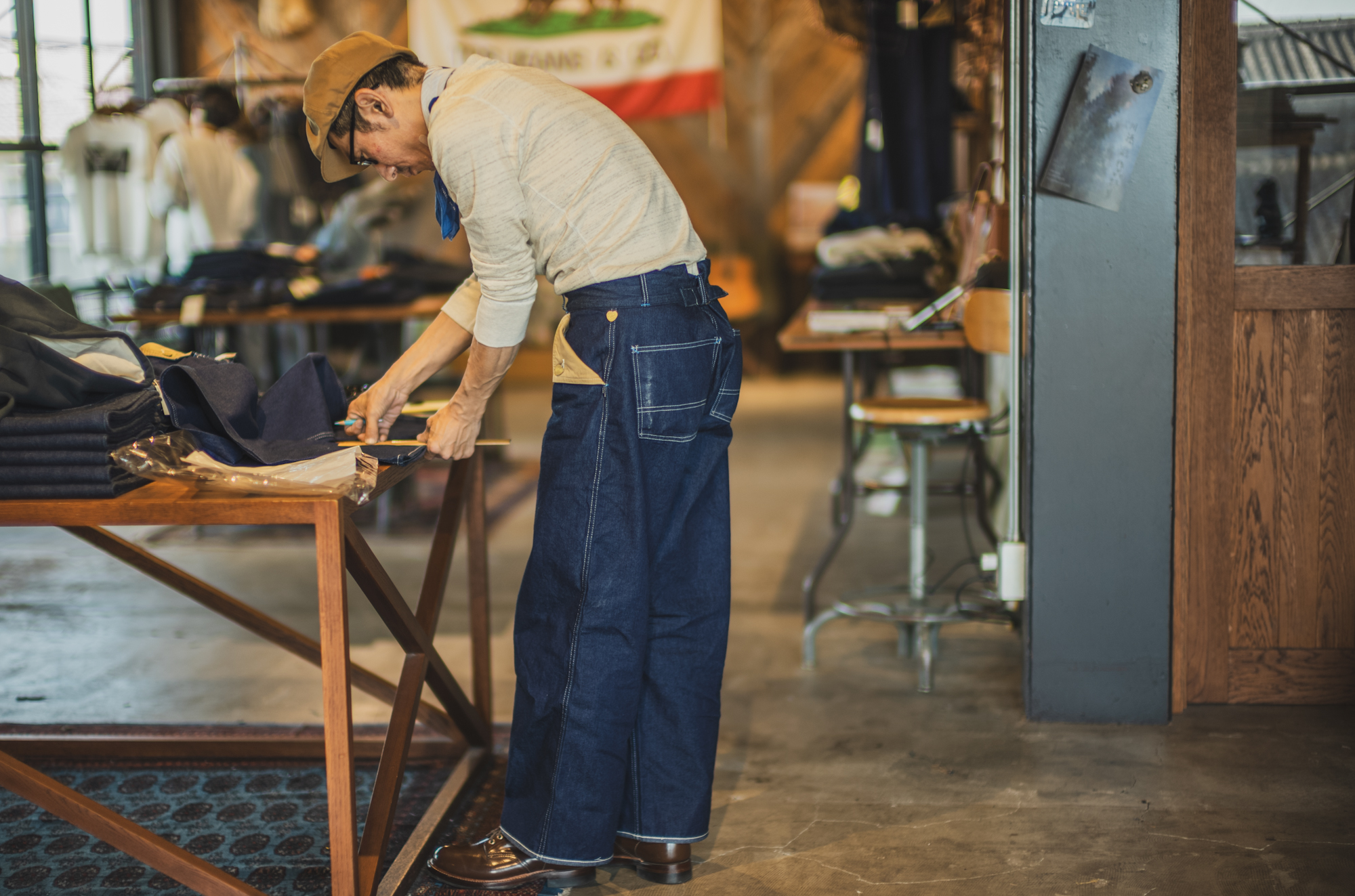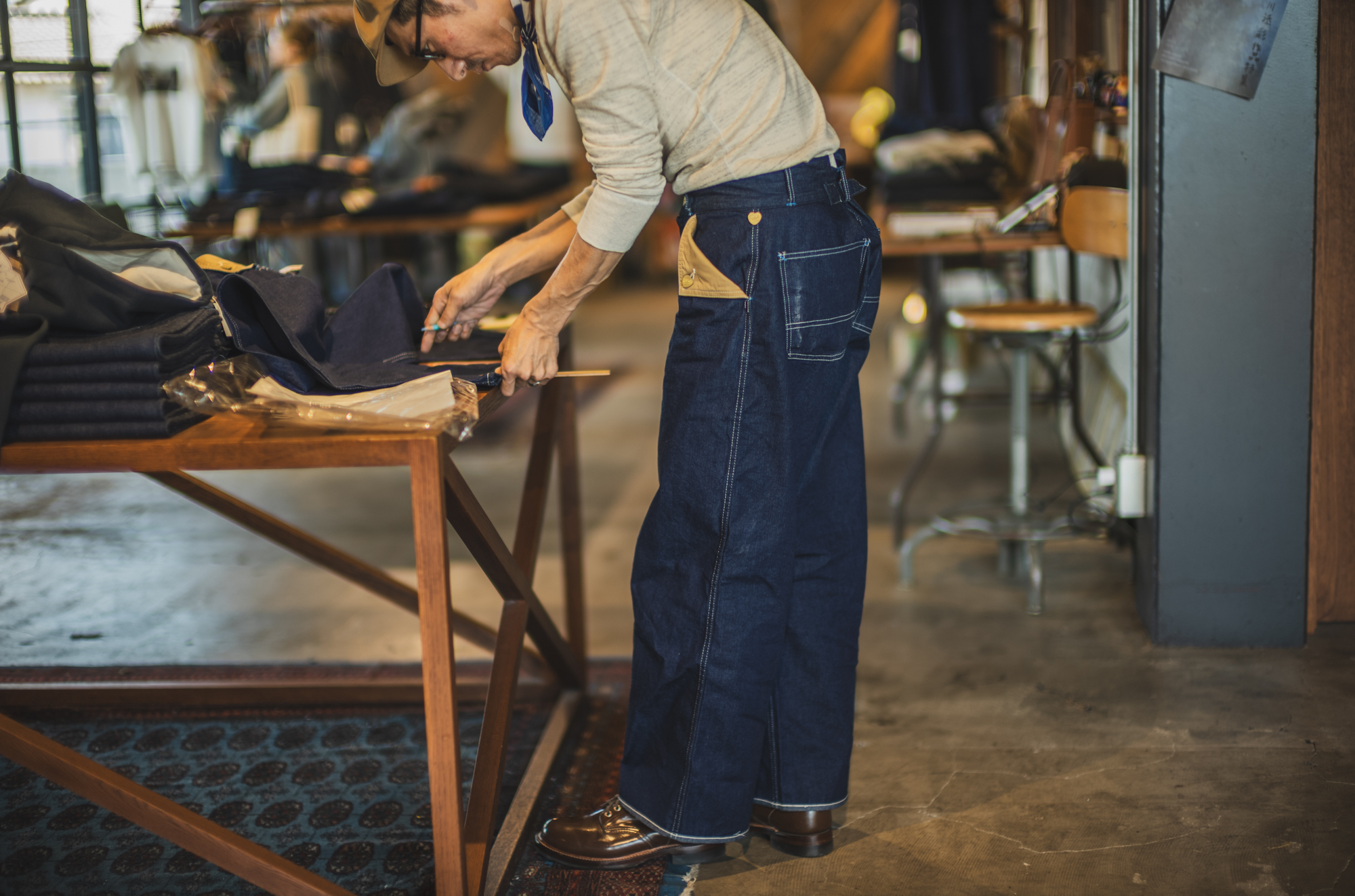 彼のキャラが存分に活きるスタイリングですが、 ベルトを使わずにシンチバックを絞り、ヒップに沿わせて穿く—— まさに 1910–30’s のスタイル。