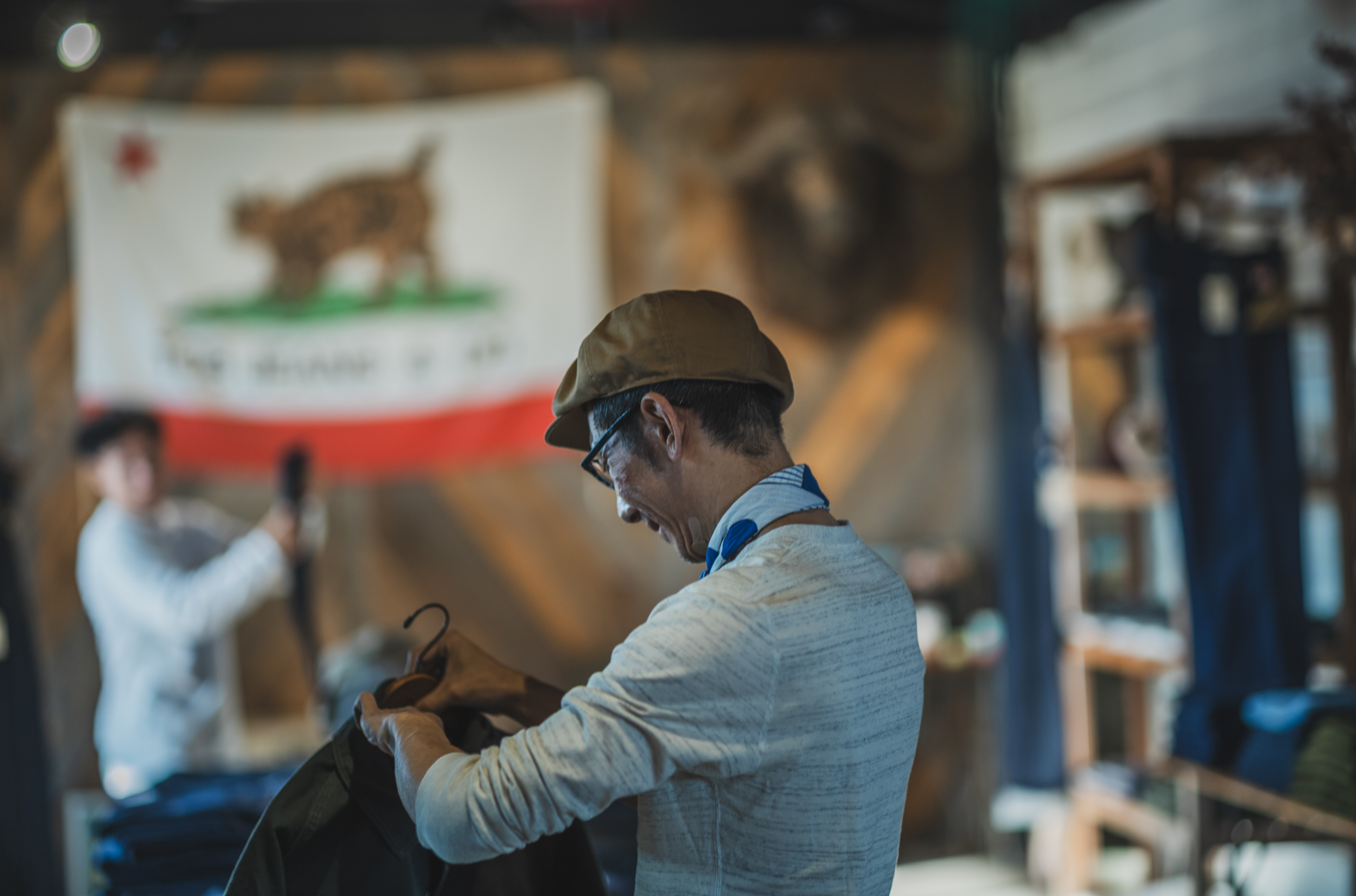 今日の児島は暖かかったこともあり、店頭ではキュンがジャケットを脱いで、 ヘンリーネックのTシャツをタックインして着用していました。