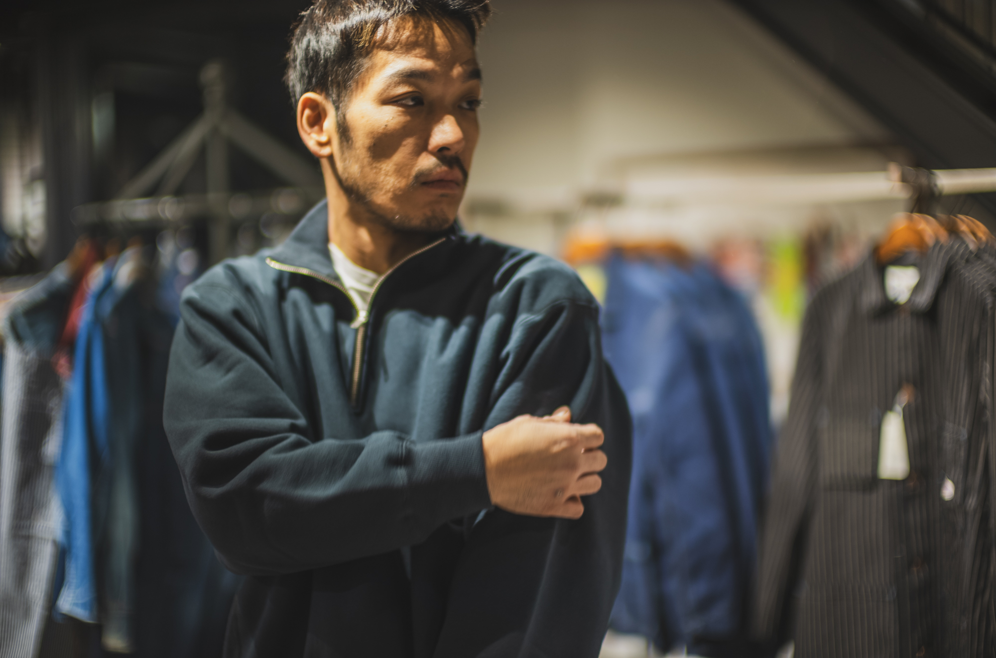 This year, we started carrying the Workers half-zip sweatshirt simply because Ryo said, “I want this!”