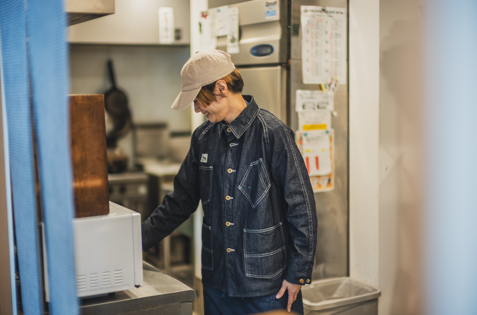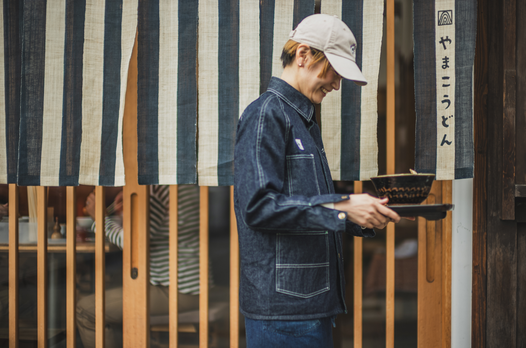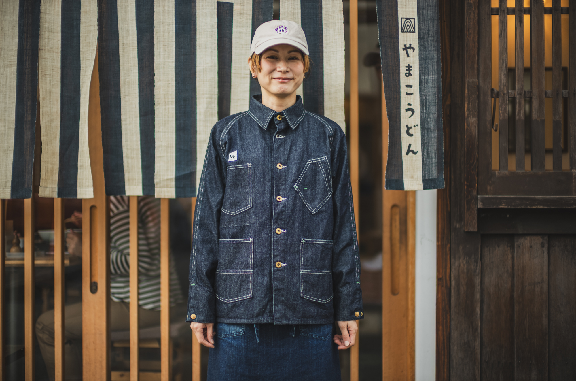 行きつけのうどん屋さんの女将さんに着ていただいた Black Cat JK。