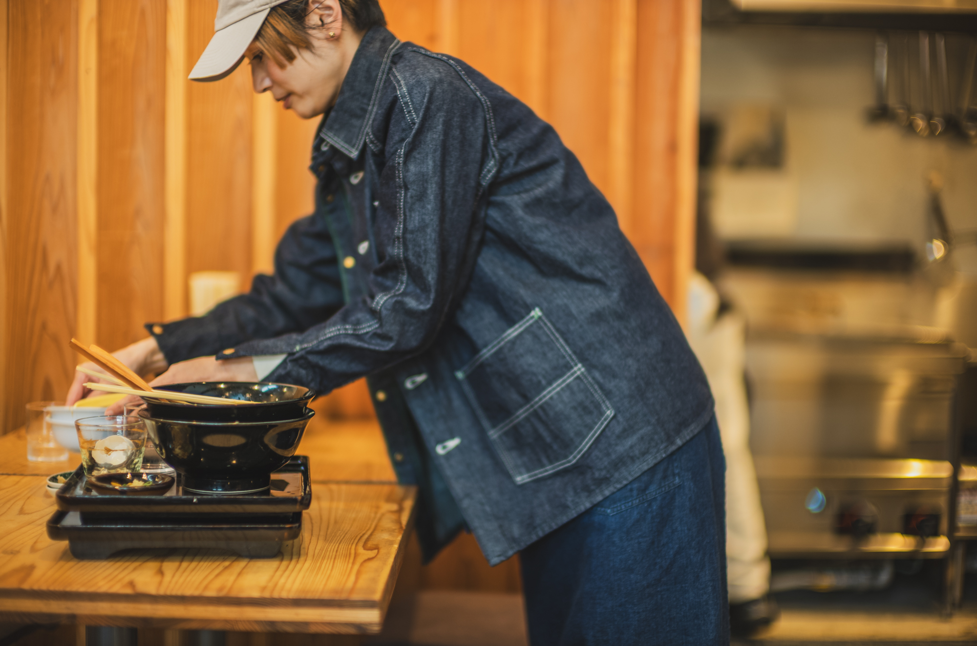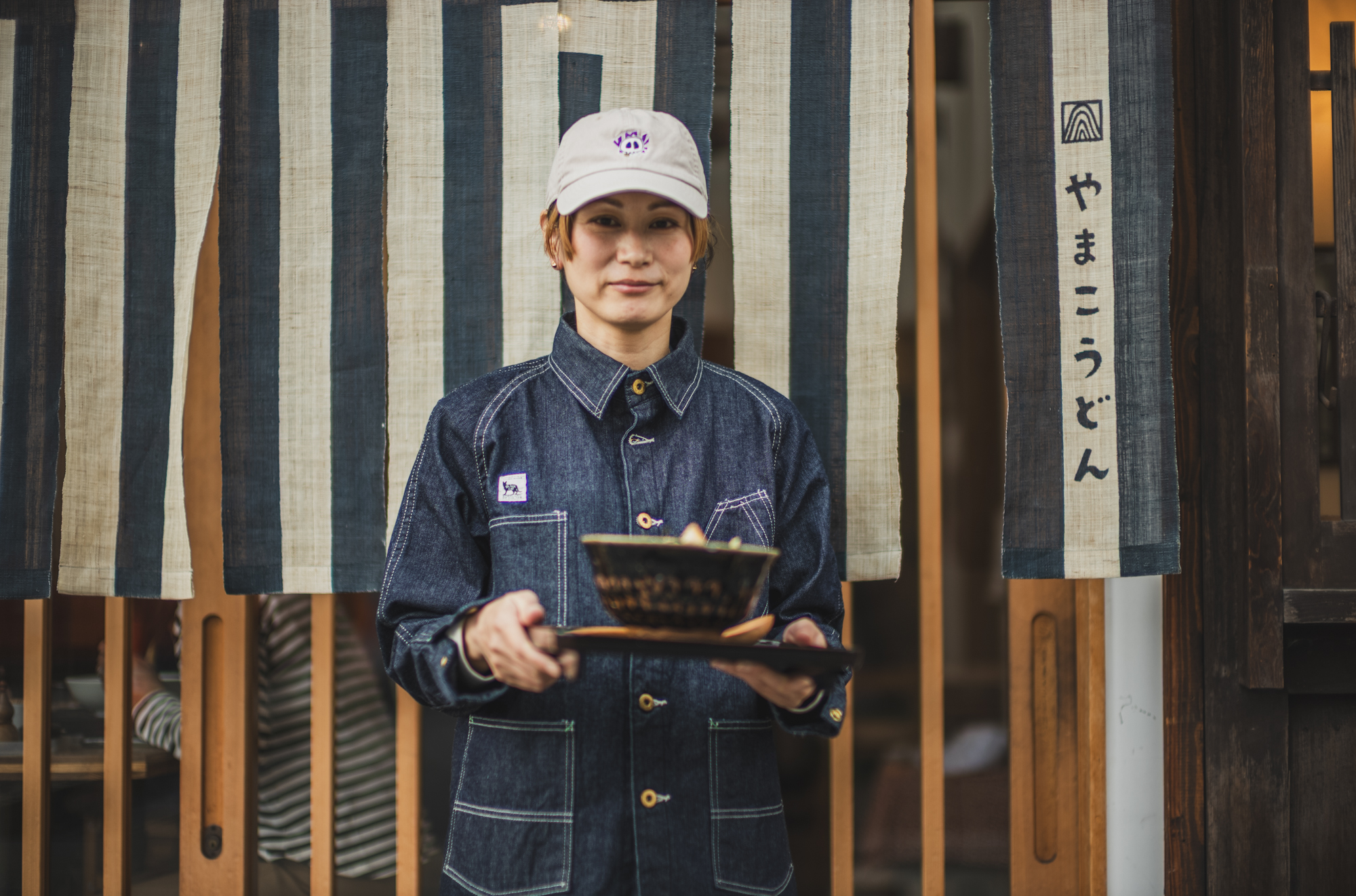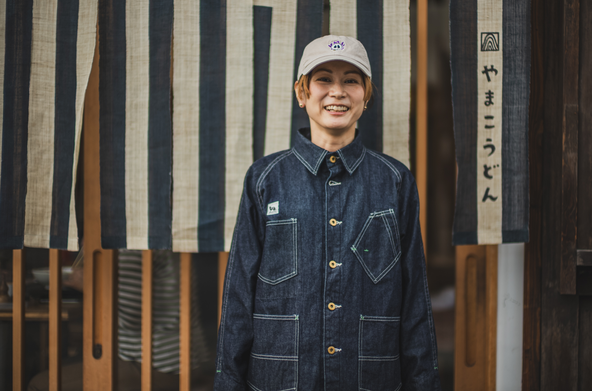 行きつけのうどん屋さんの女将さんに着ていただいた Black Cat JK。