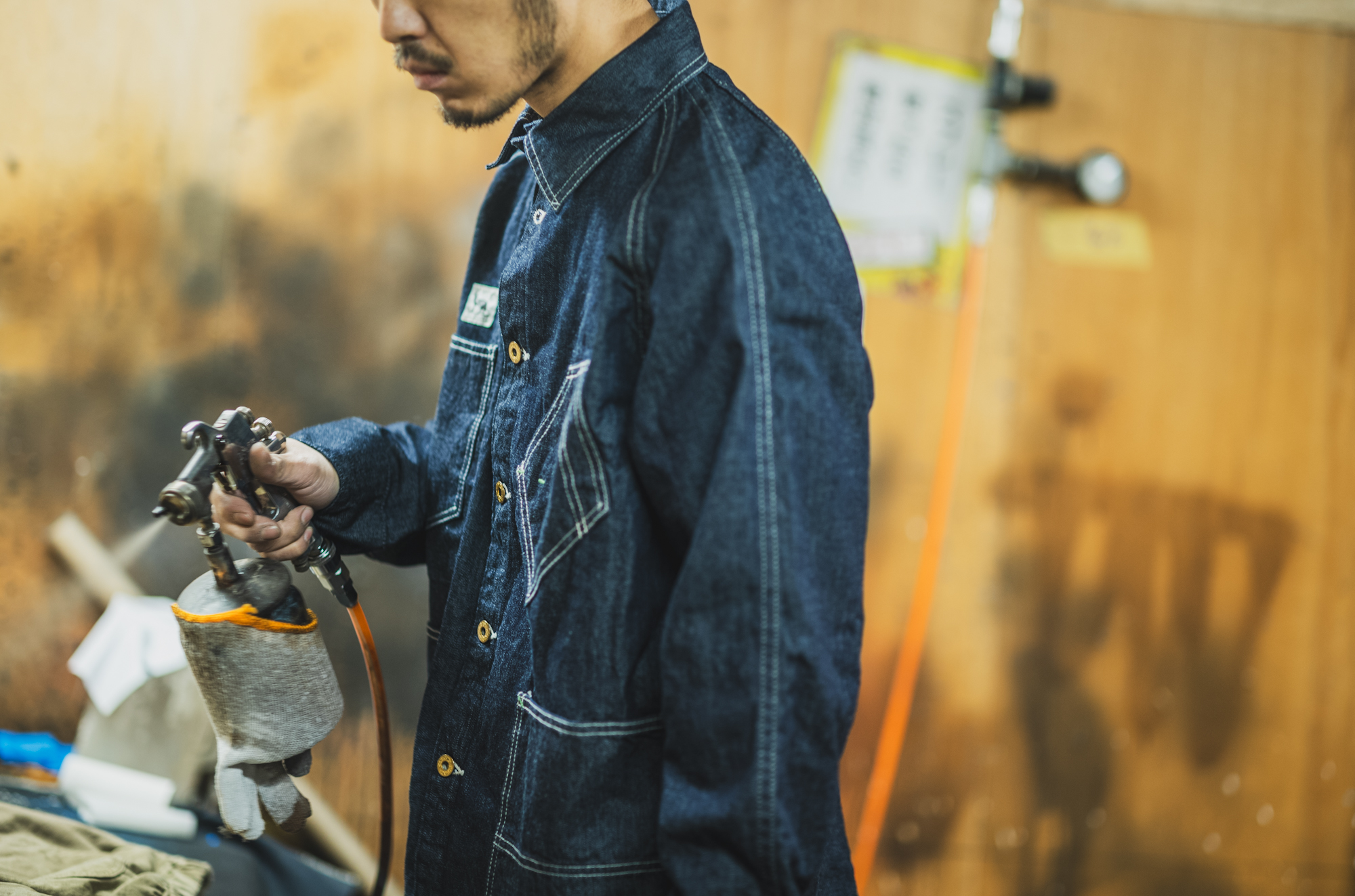 新品の状態でも、肩周りのフィット感が驚くほど良く、ラグランならではの流れるようなラインが写真にしっかり現れます。
