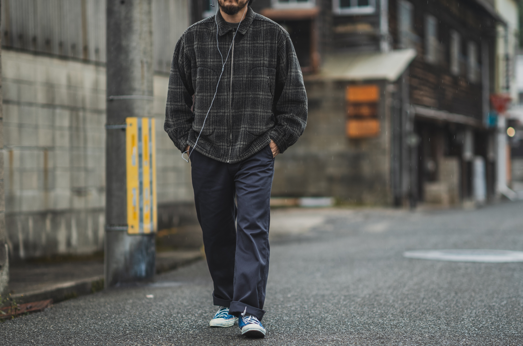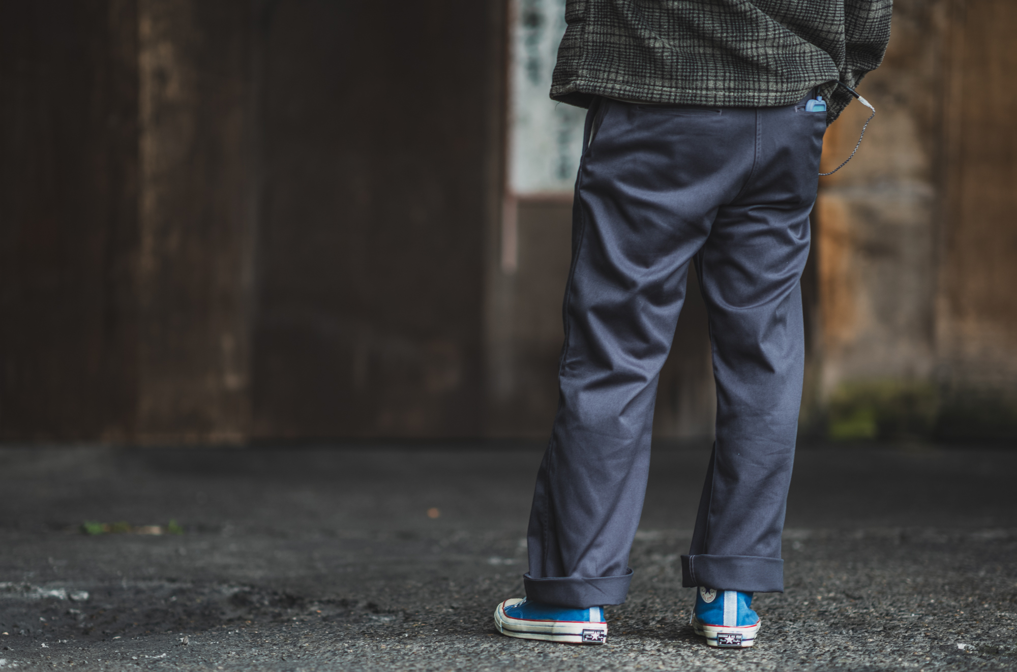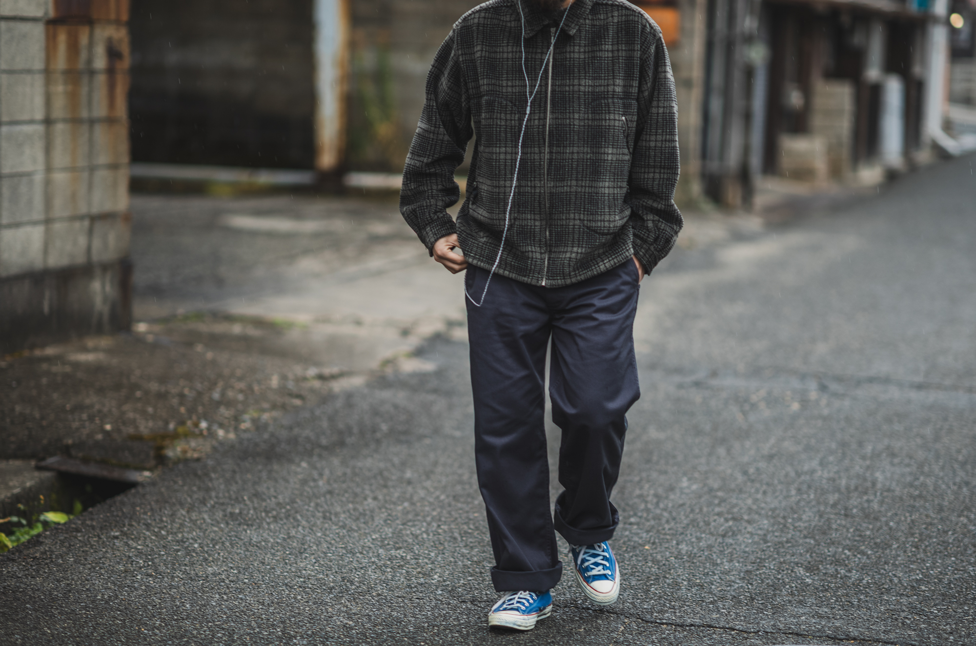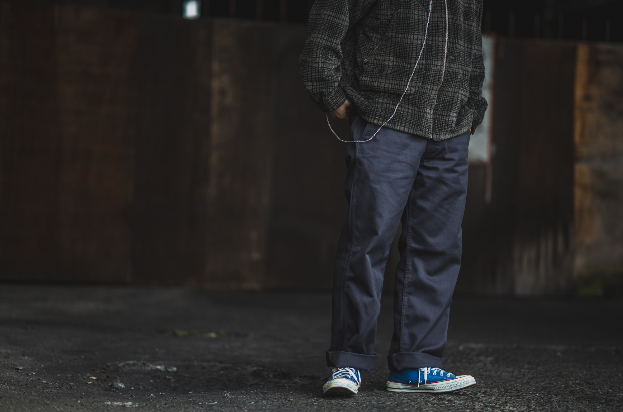 もちろん、このパンツをガンガンのワークウェアとして穿いてもらうのもいいし、 元スケーターの方に、少し上品に合わせてもらうのも、すごく素敵だと思います。