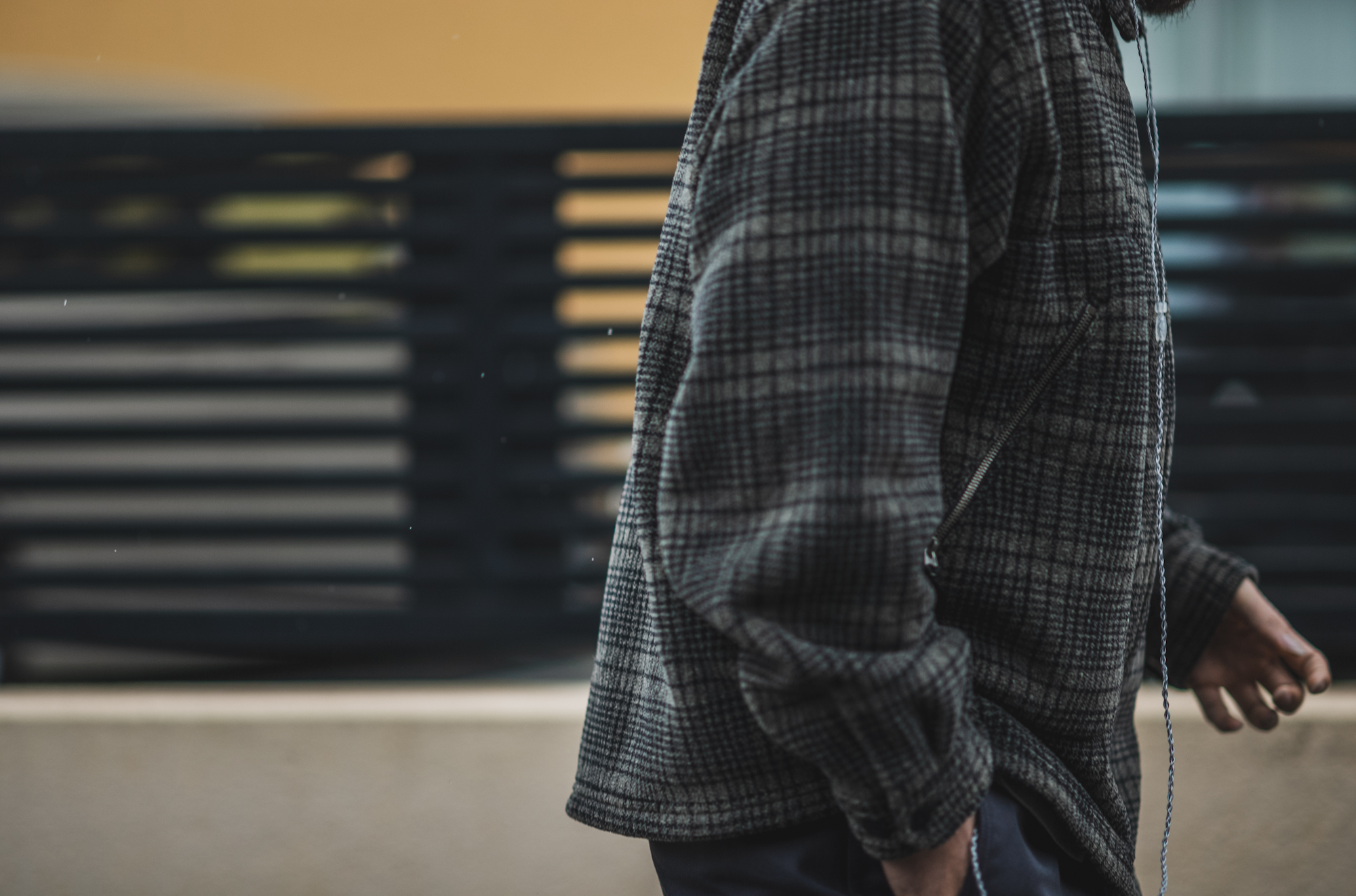 そんな生地の第二弾として、今回は グレー を作りました。 今日、Ryo 君が合わせてくれたスタイルは、 TCB のイメージよりも、少し“大人のスケーター”。