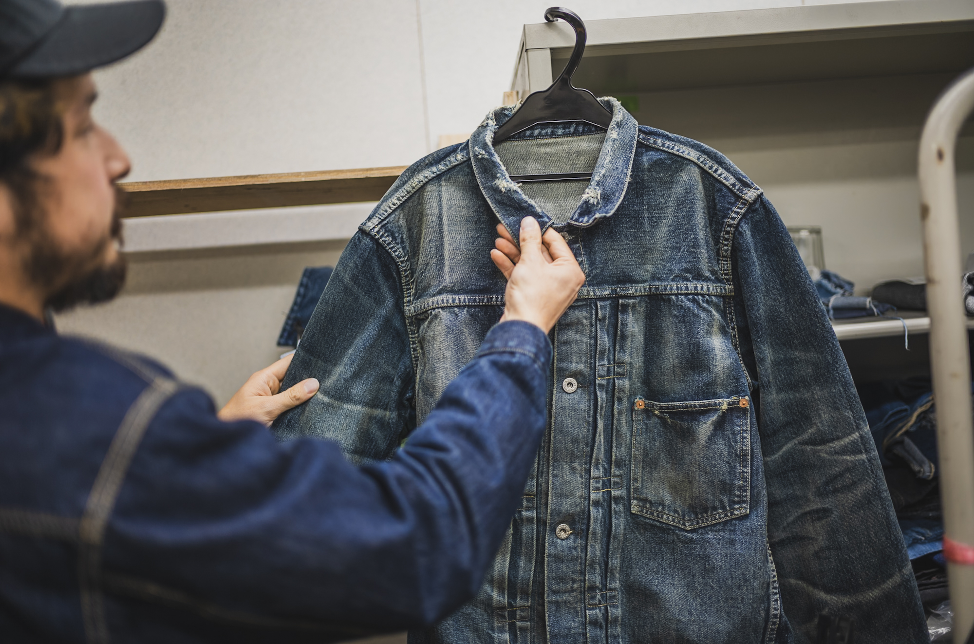 and precisely adjusted the ratio between the jeans and the pumice stones