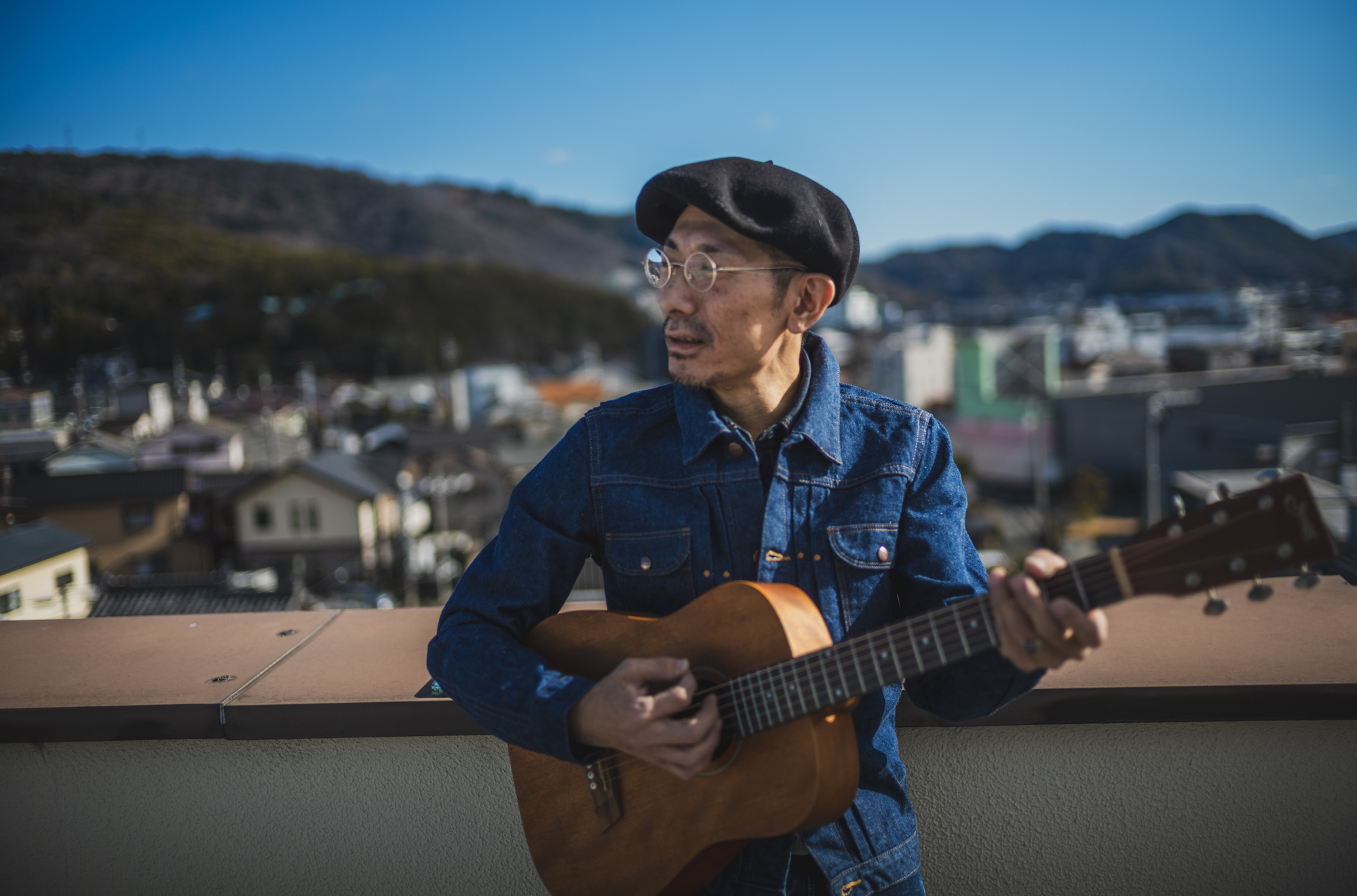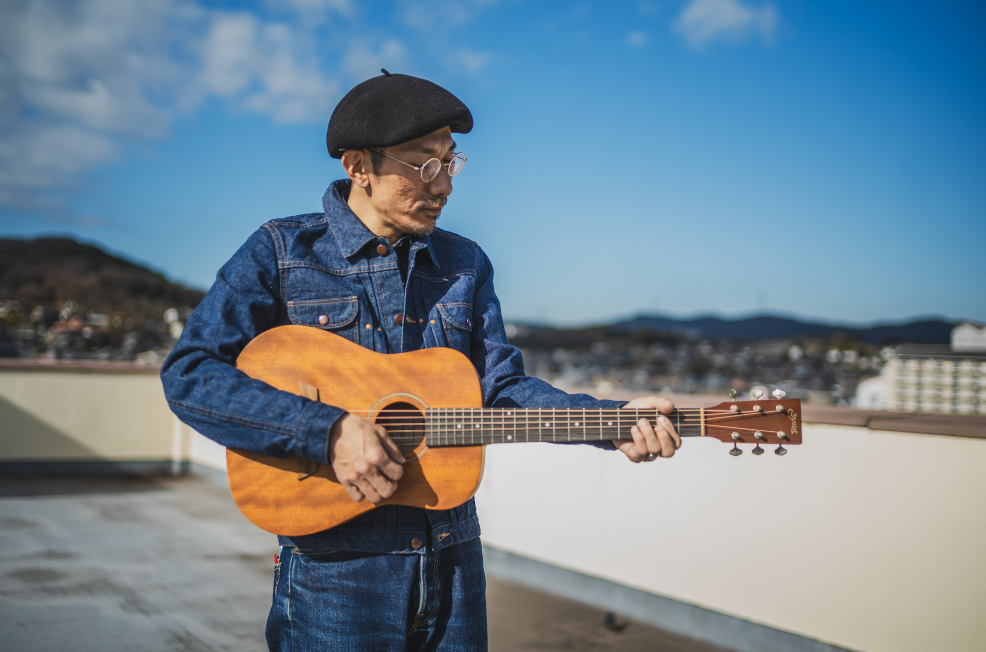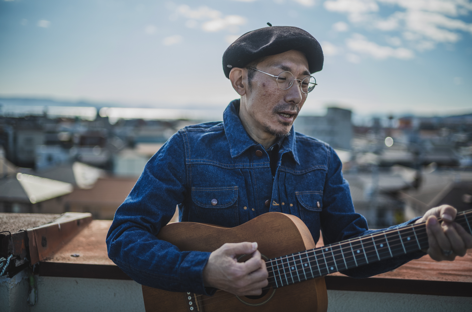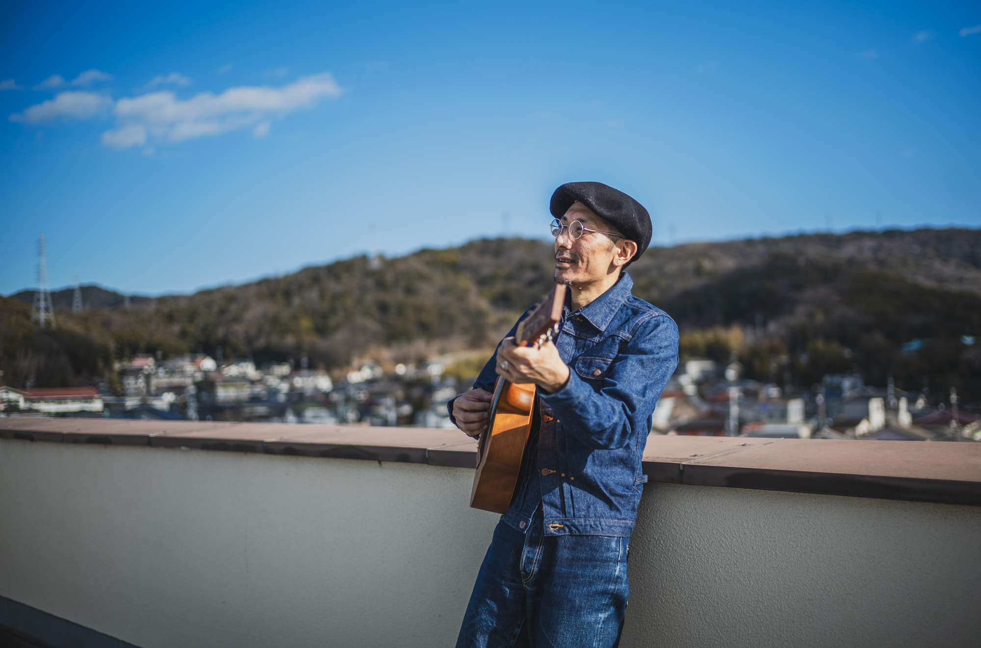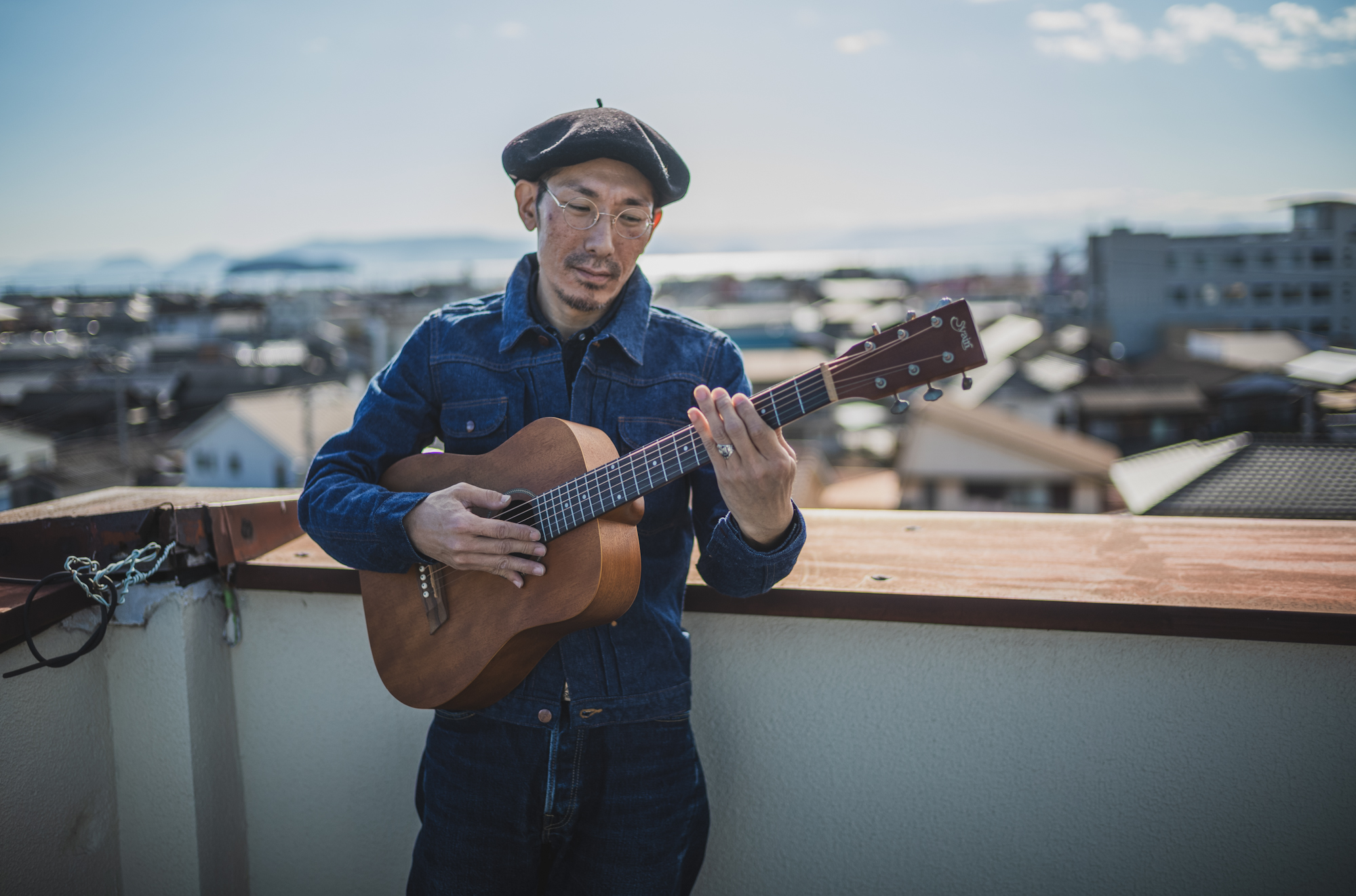 ギターを担いで、屋上にいました。