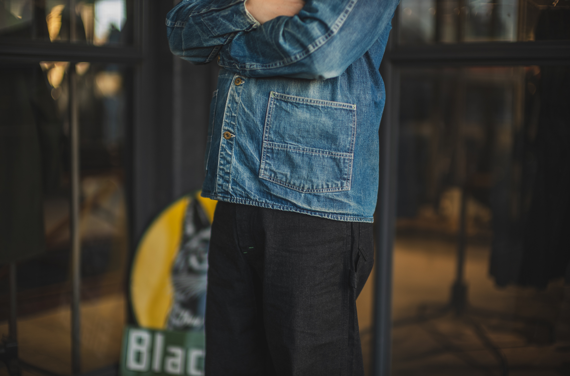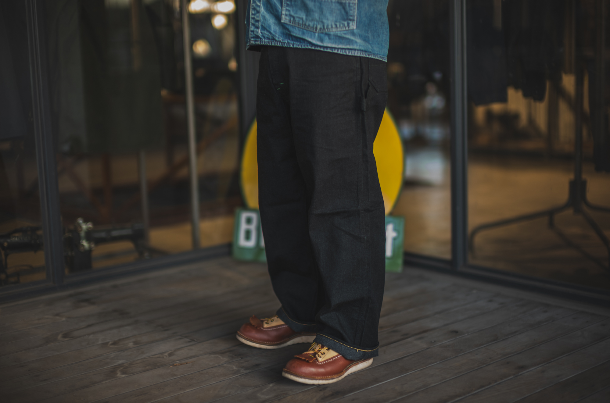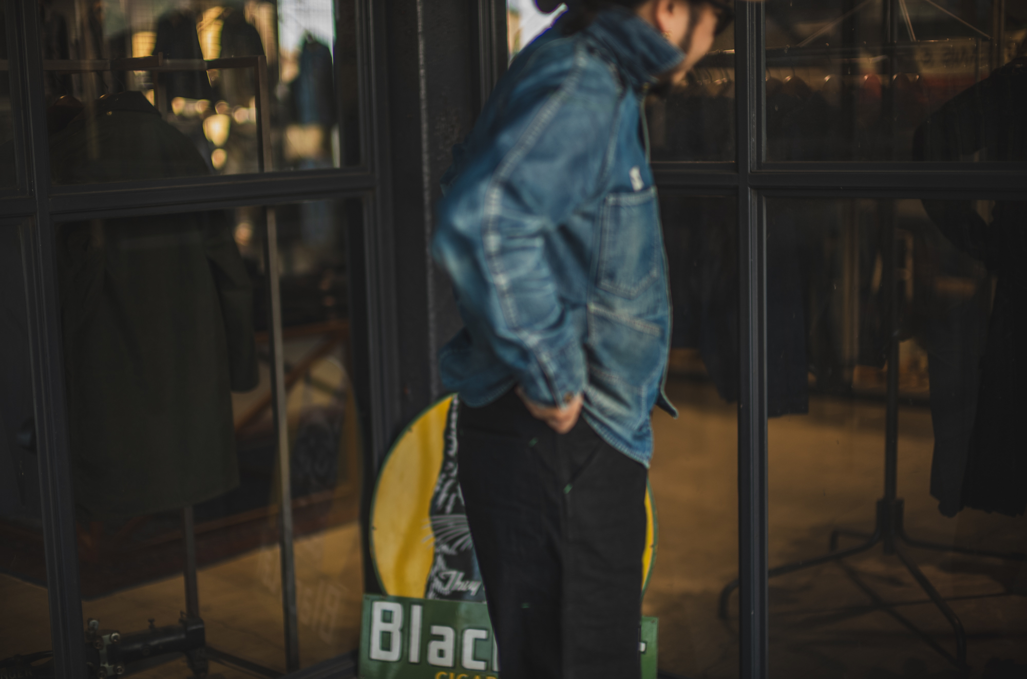 今日の写真の様に、少しボロくなってきたカバーオールにはINDのパンツを合わせるよりブラックのパンツを持ってきた方がバランスを取りやすいんでしょうし。