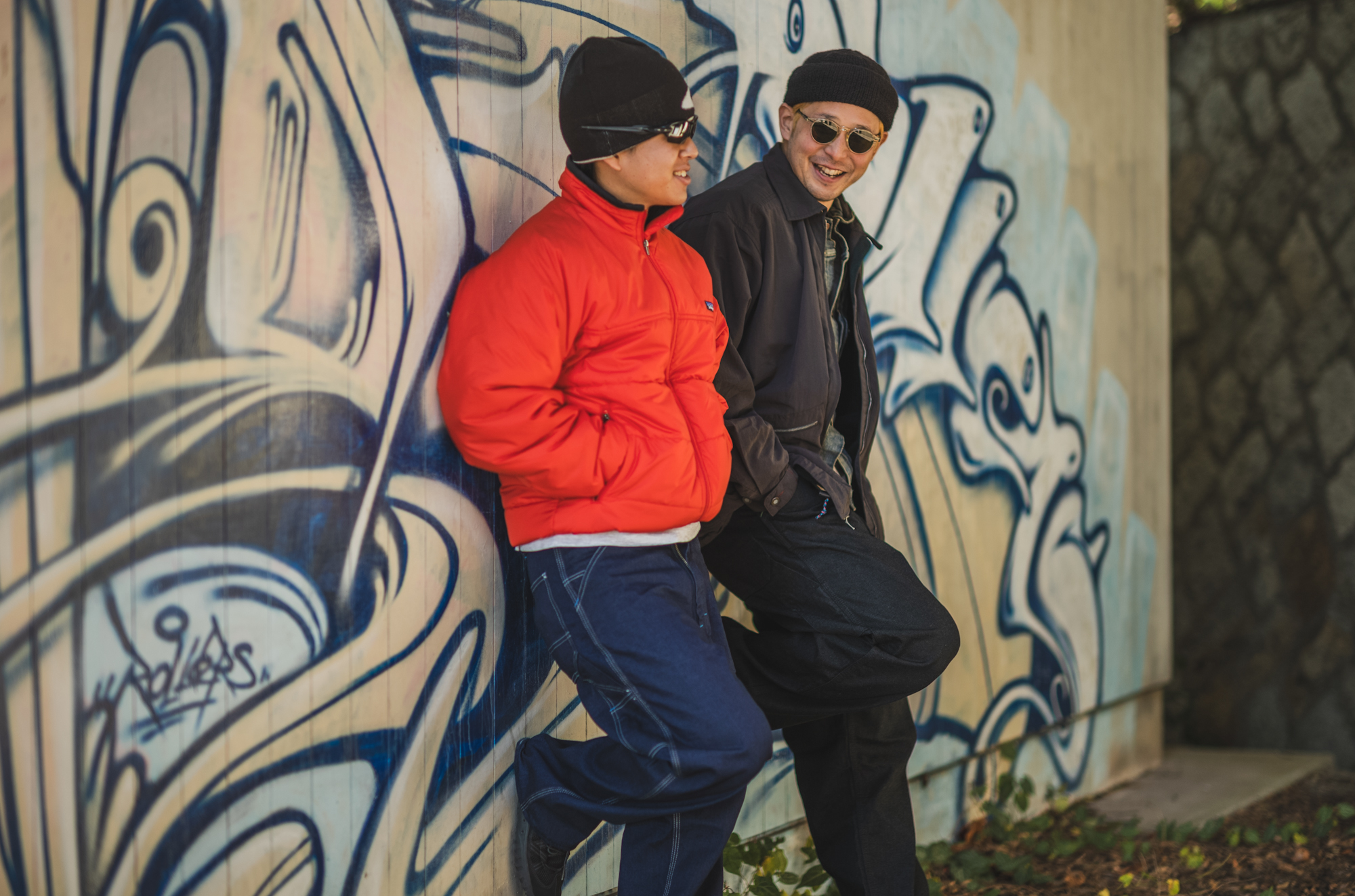 ふたりともヴィンテージの Patagonia に合わせて着用。