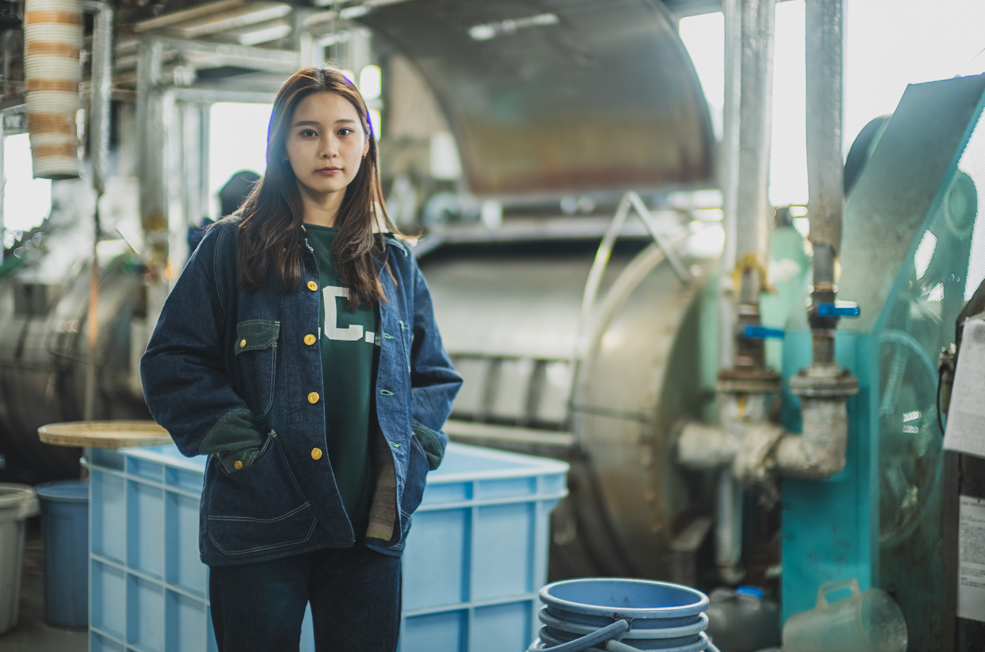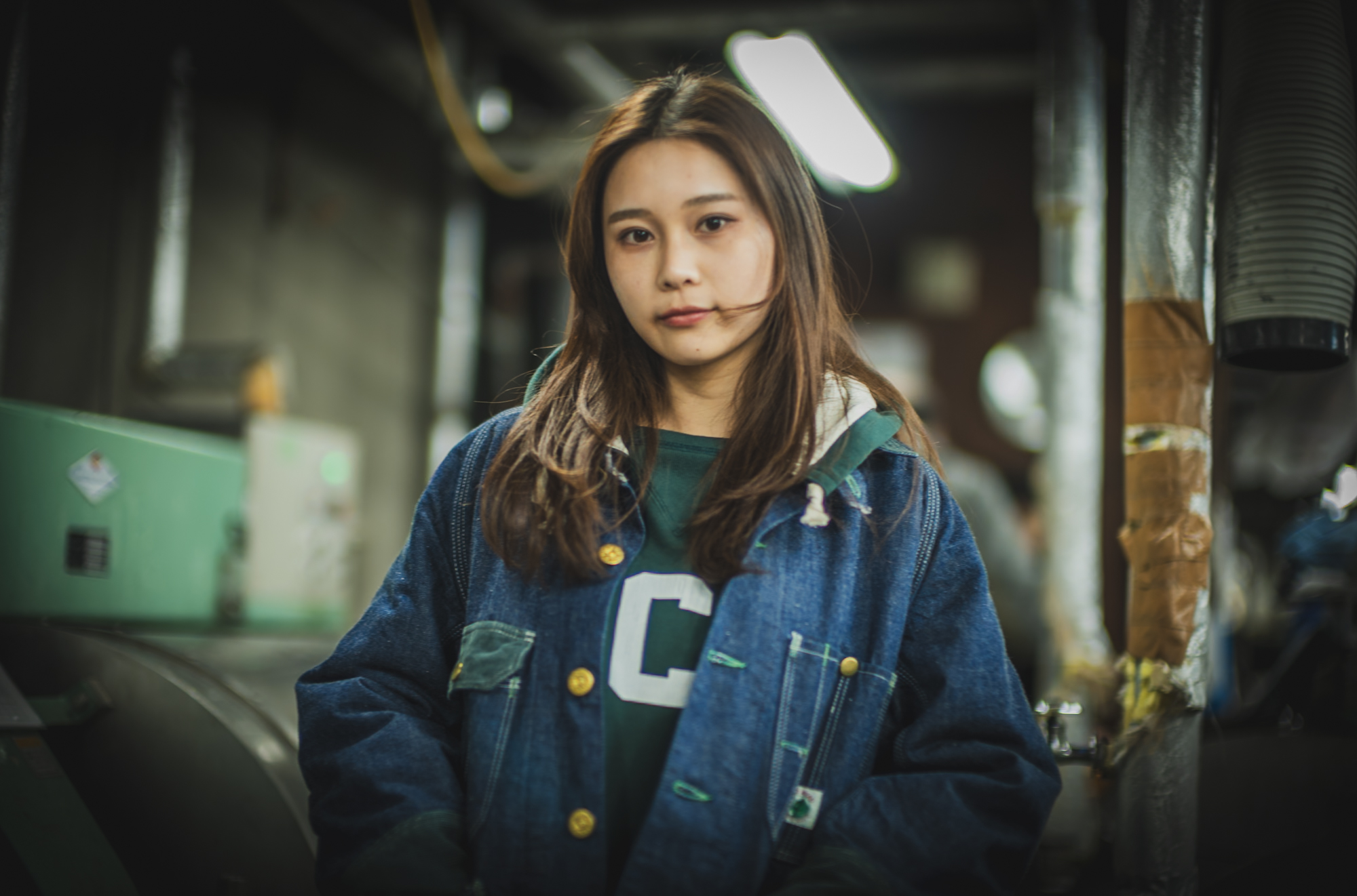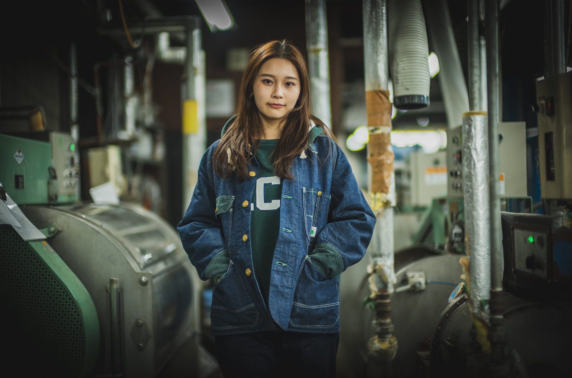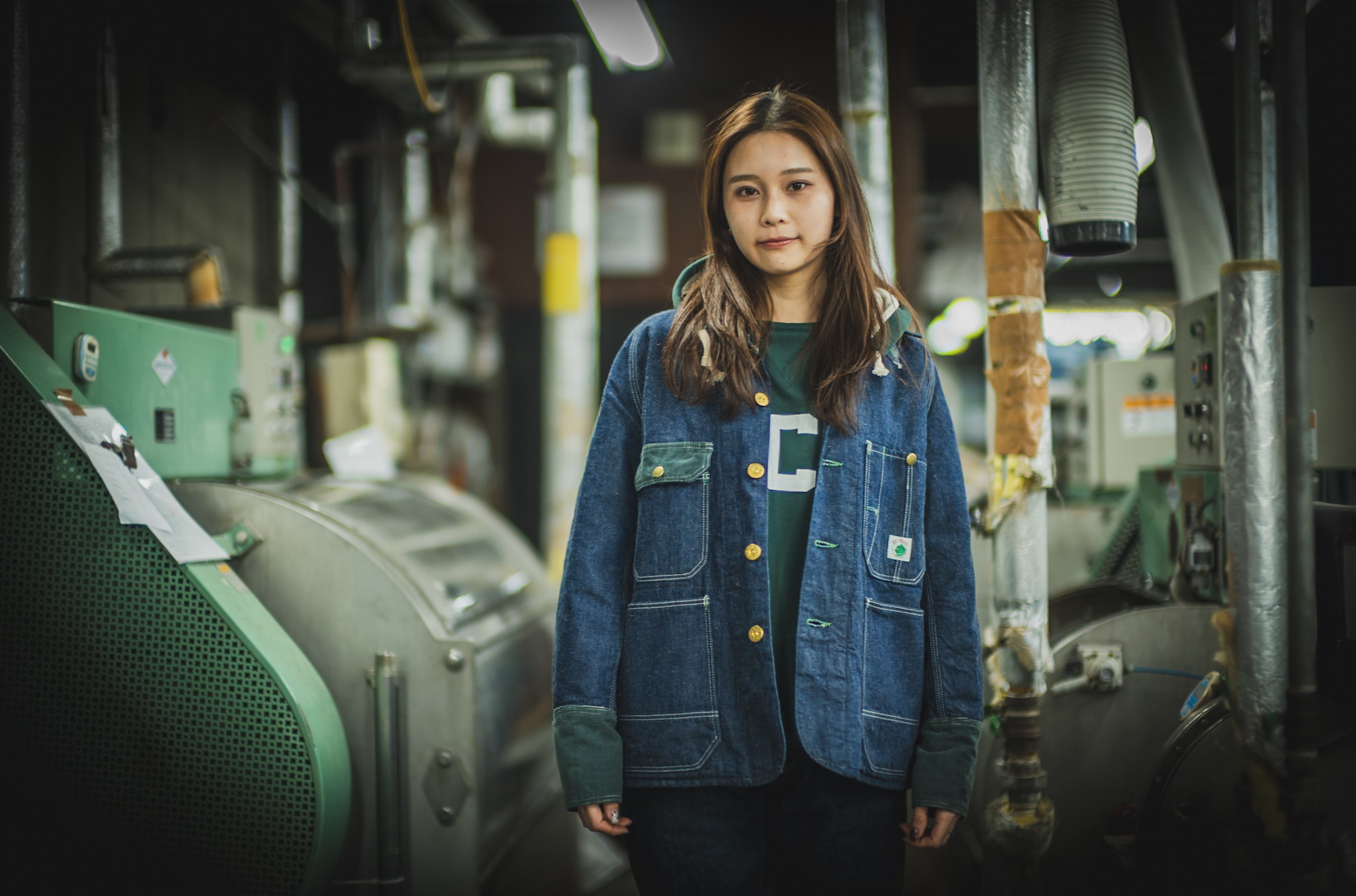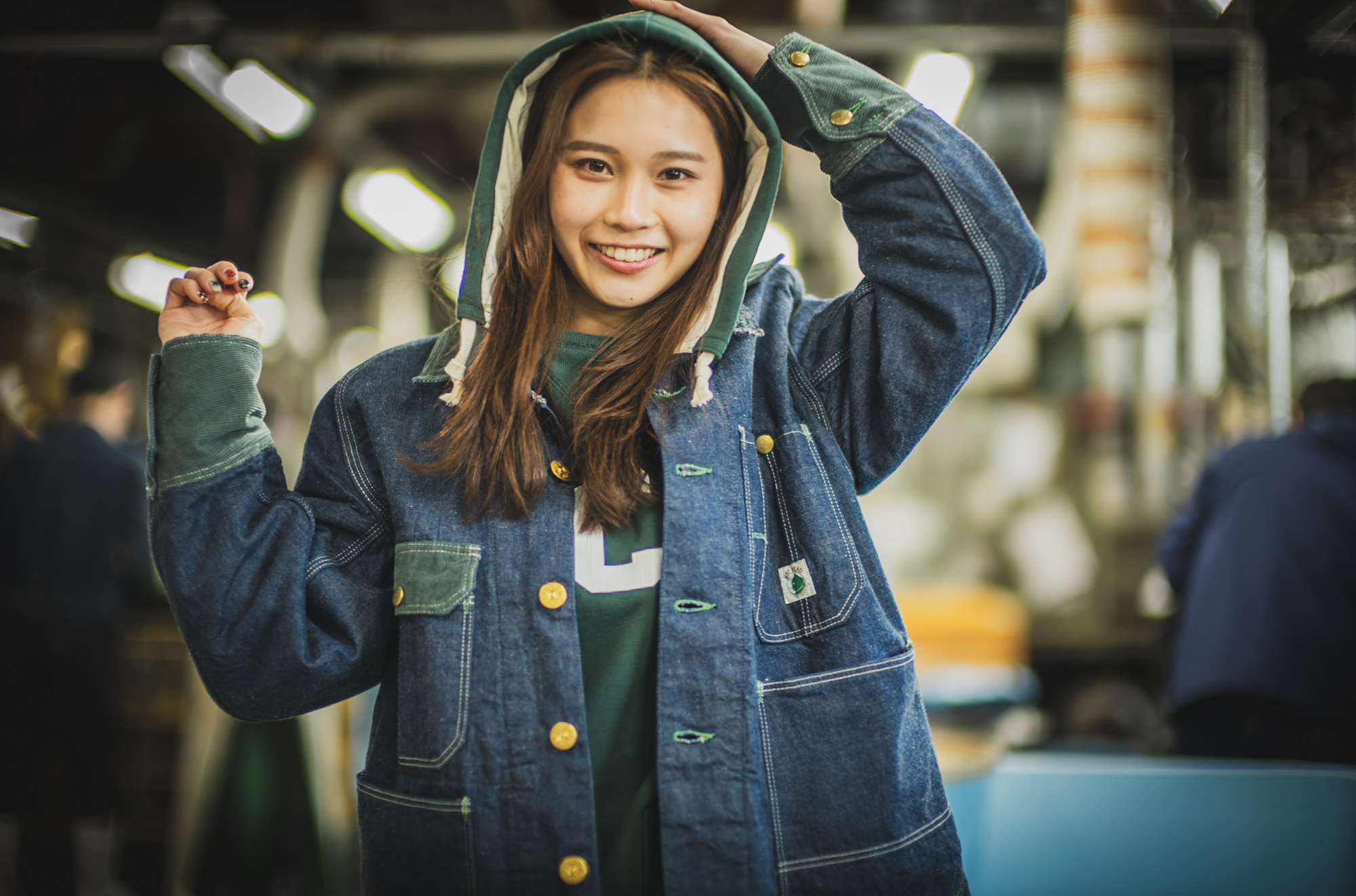 インナーの Hoodie も同じグリーンでリンクさせて着ると、