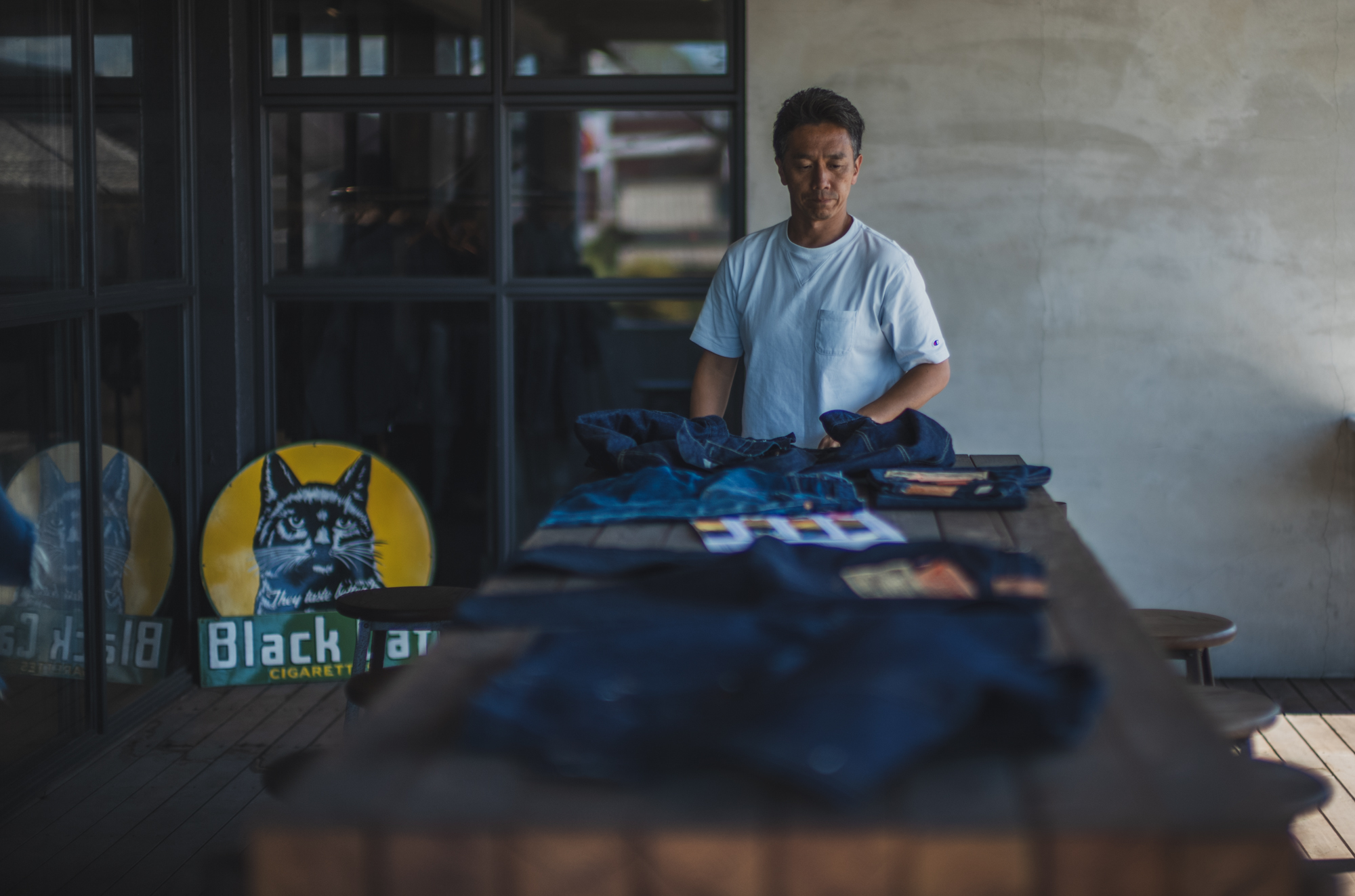 そして彼は、 青い空と青いデニム。 その二つに魅了された男。
