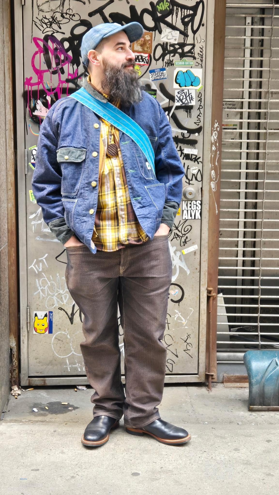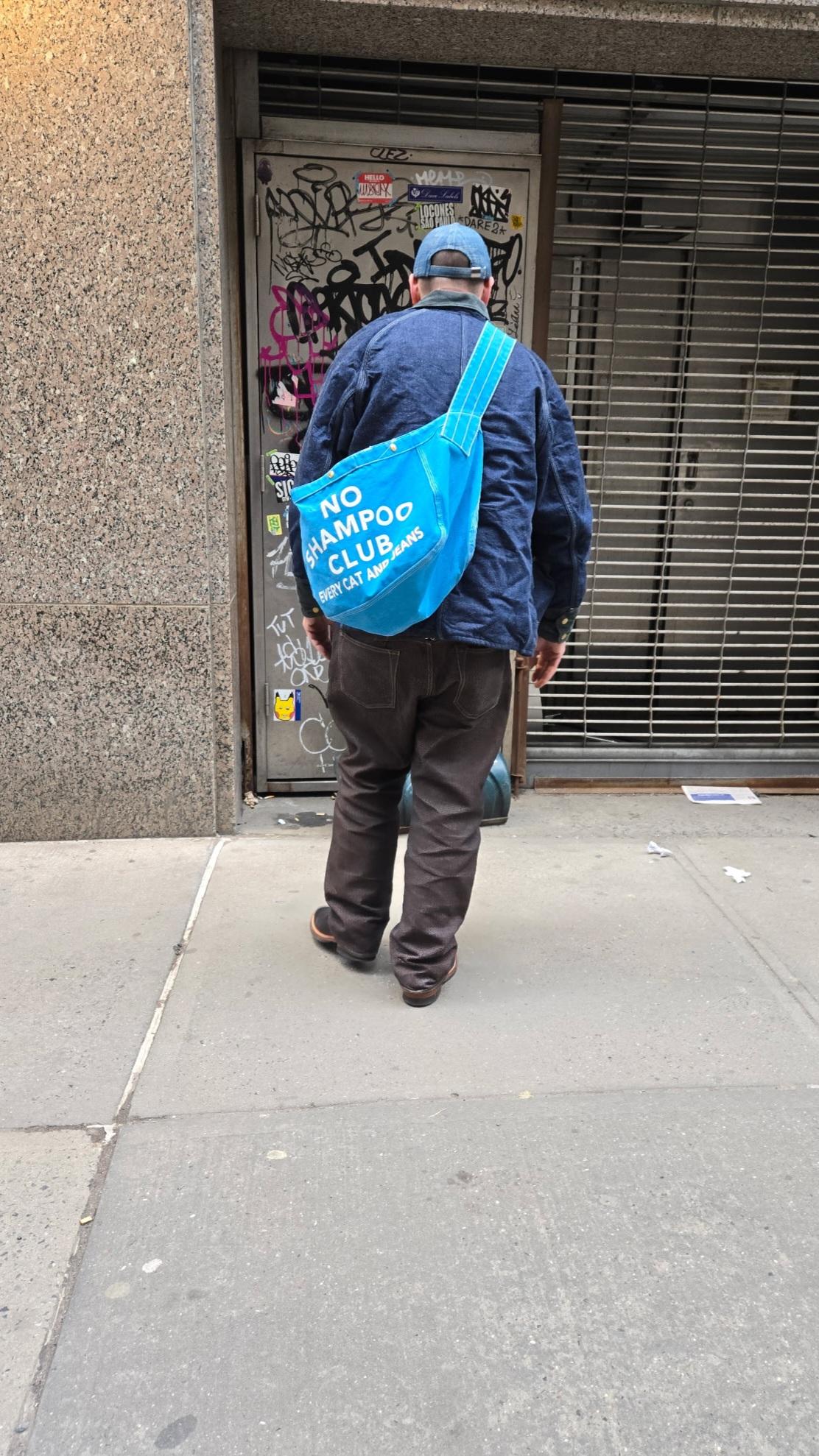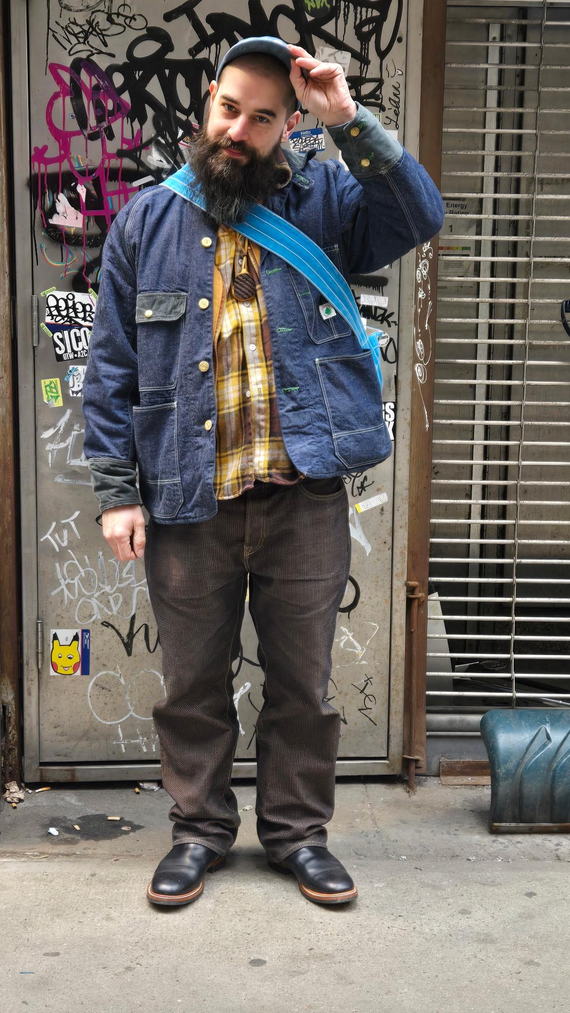 We received some wonderful photos of John wearing our LINED Cat Head Jacket along with the N TIMES BAG,
