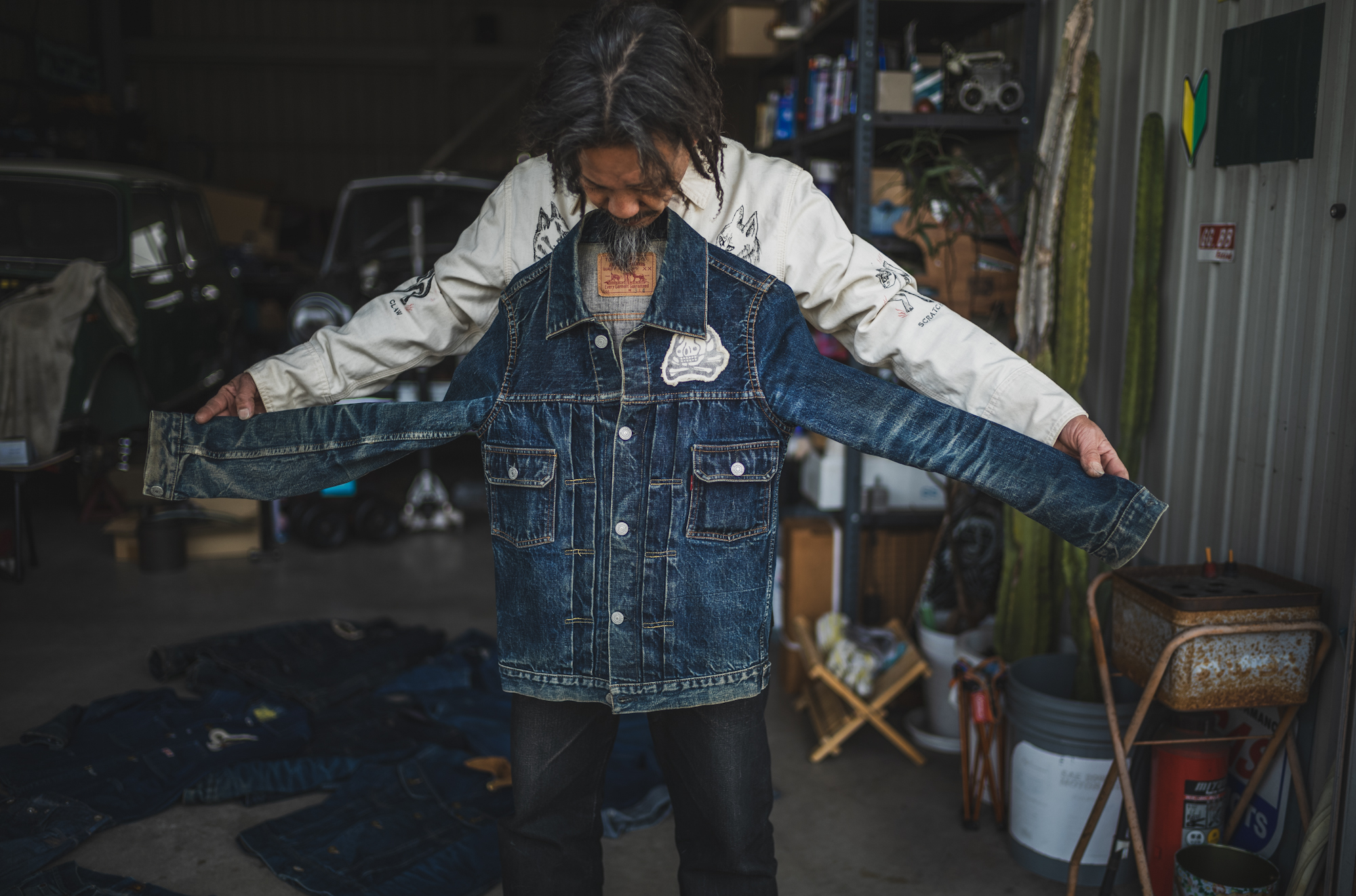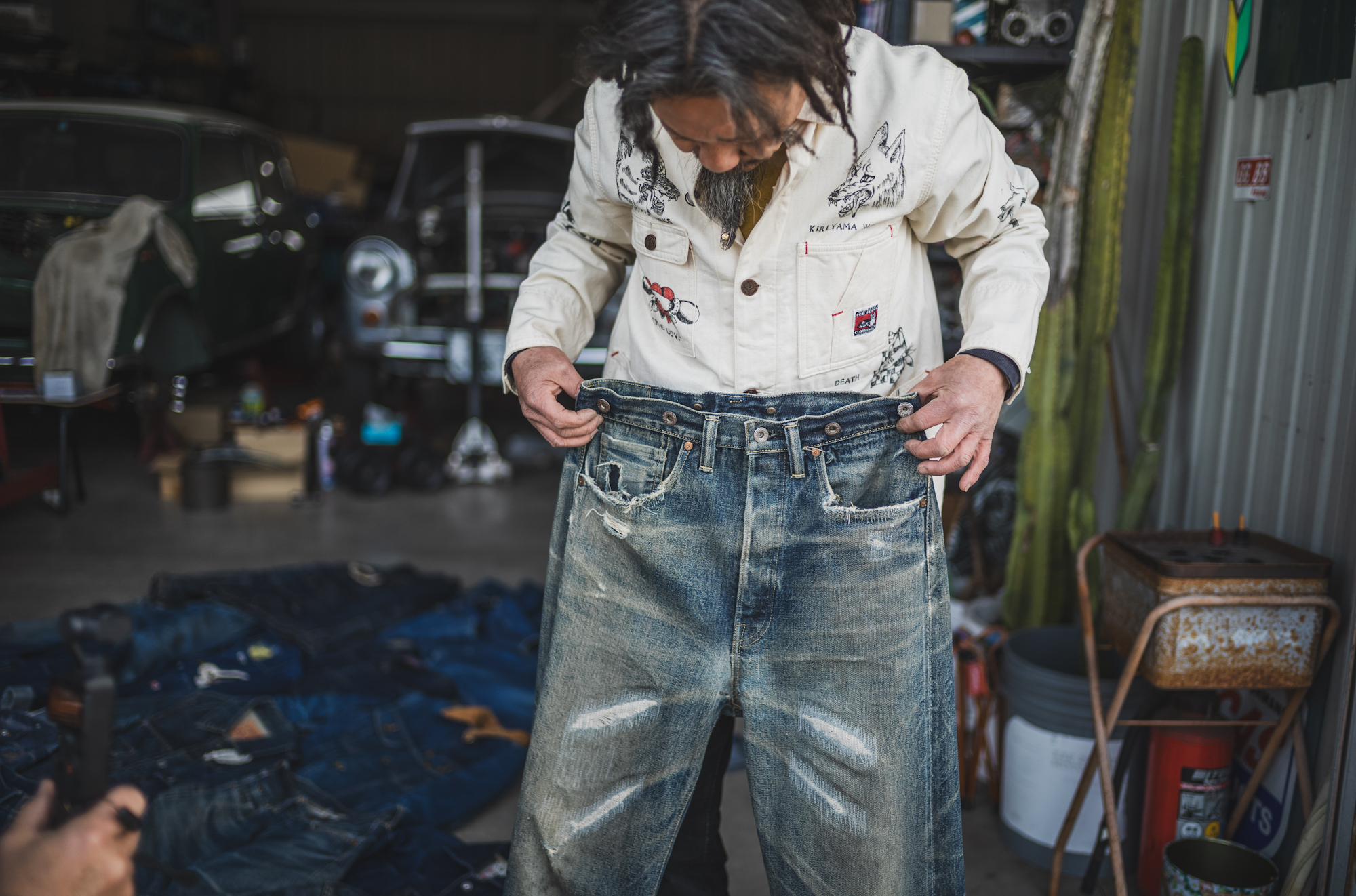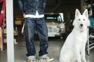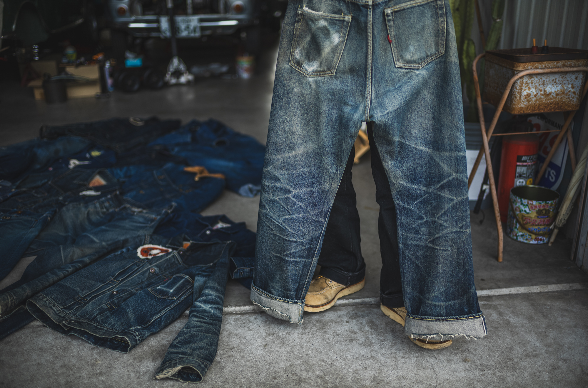 やはり犬との生活 オイルにまみれてのガレージワークスによる迫力ある色落ちを確認して頂けると思います 動画内では誰でも簡単に迫力のある膝裏の蜂の巣を入れるテクニックを少し話させて頂きましたので是非ご覧になって頂ければ嬉しいです。