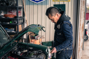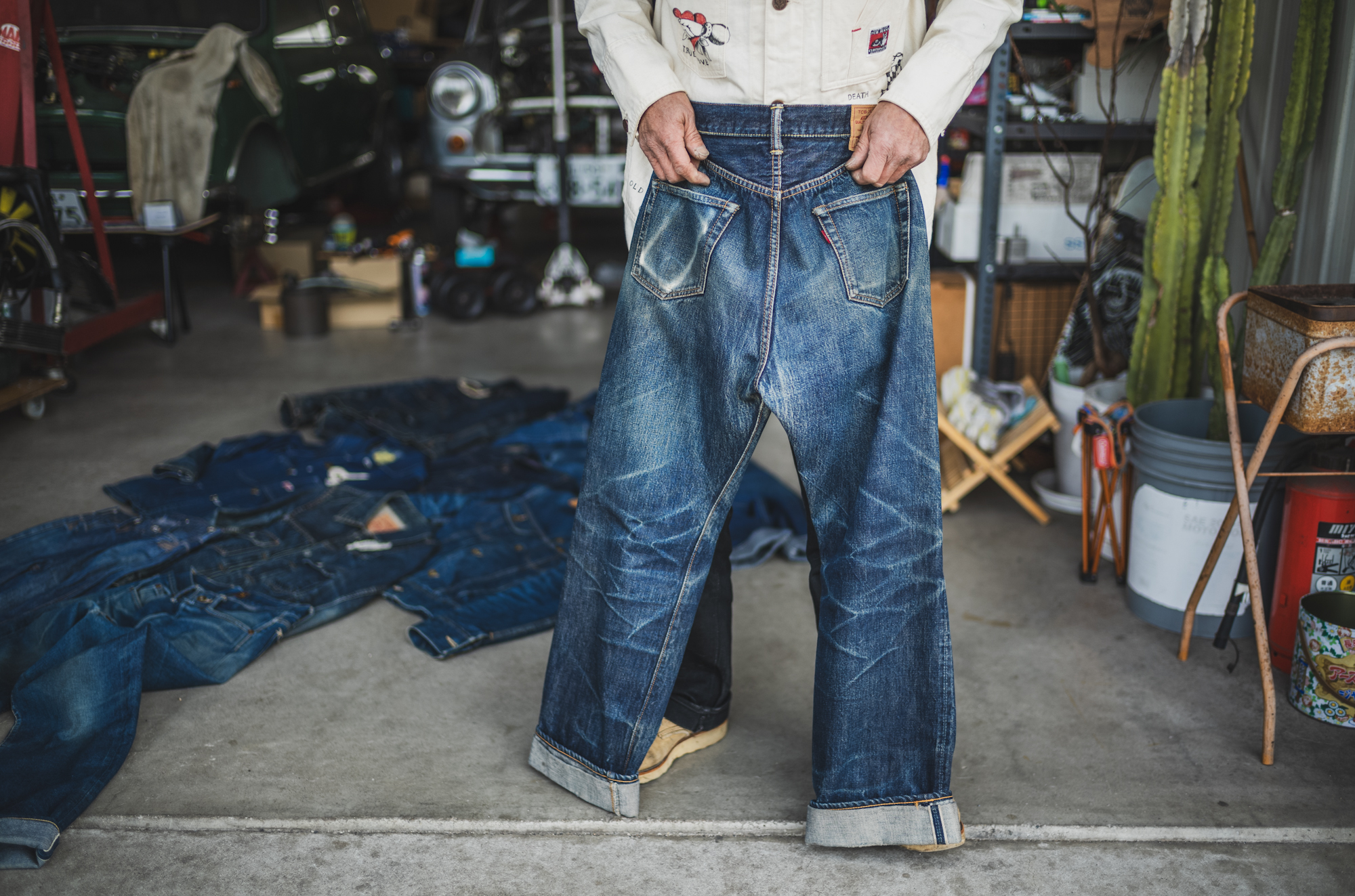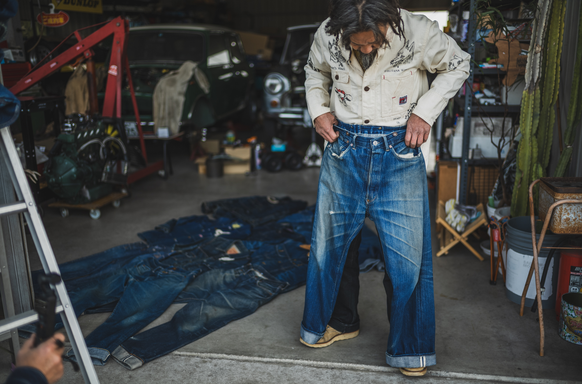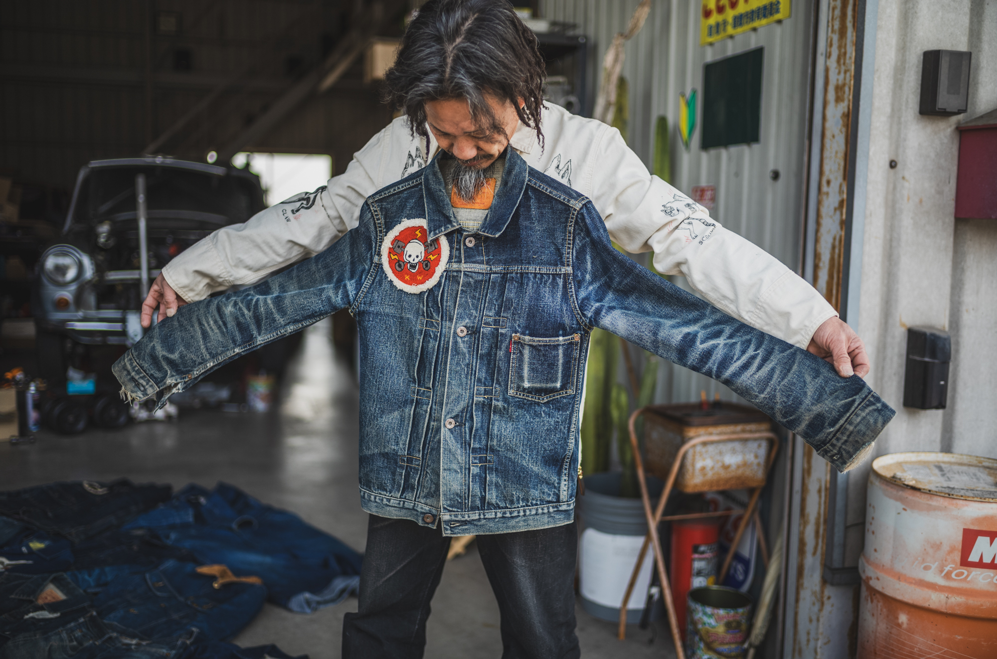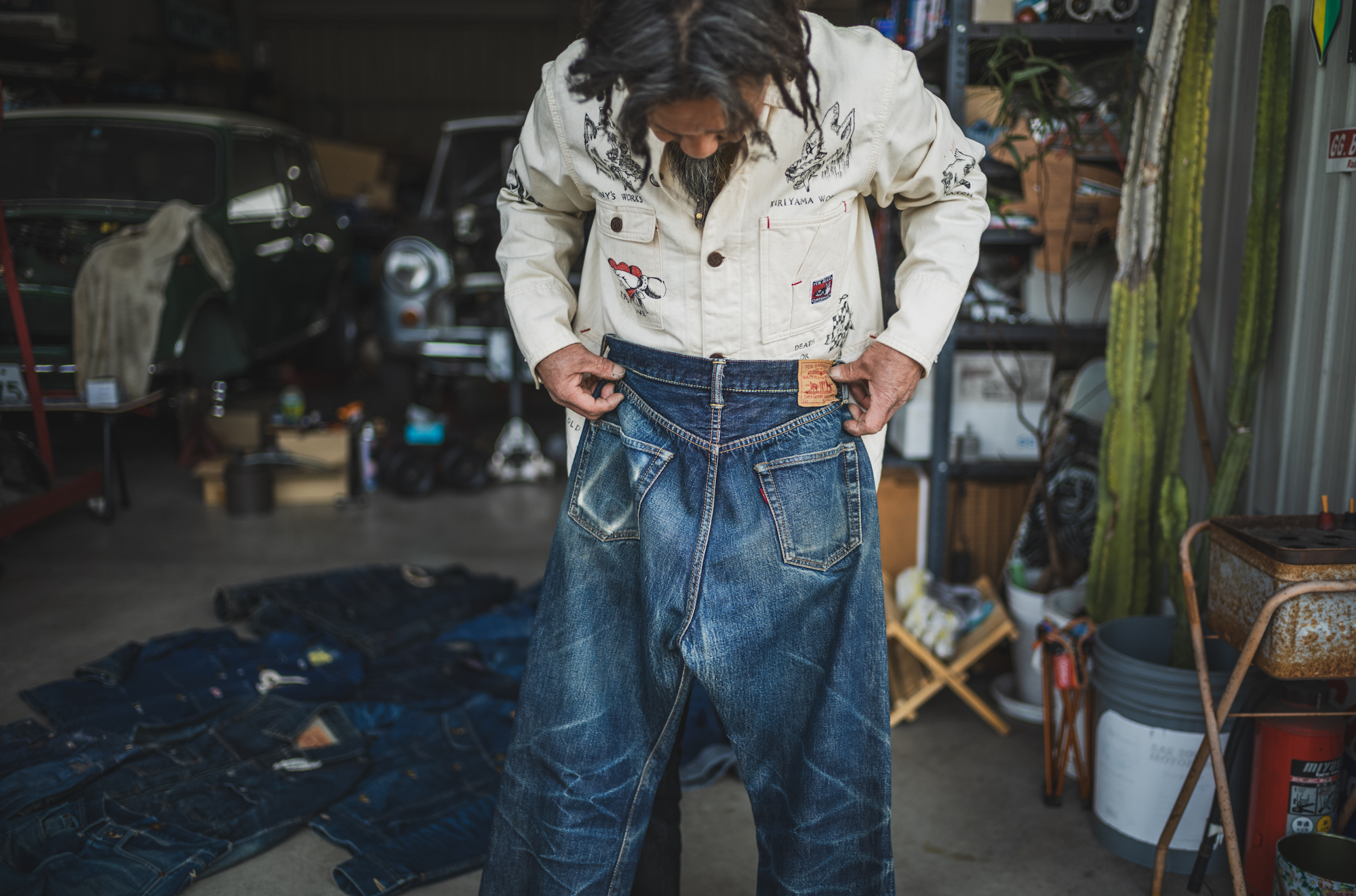 やはり犬との生活 オイルにまみれてのガレージワークスによる迫力ある色落ちを確認して頂けると思います 動画内では誰でも簡単に迫力のある膝裏の蜂の巣を入れるテクニックを少し話させて頂きましたので是非ご覧になって頂ければ嬉しいです。