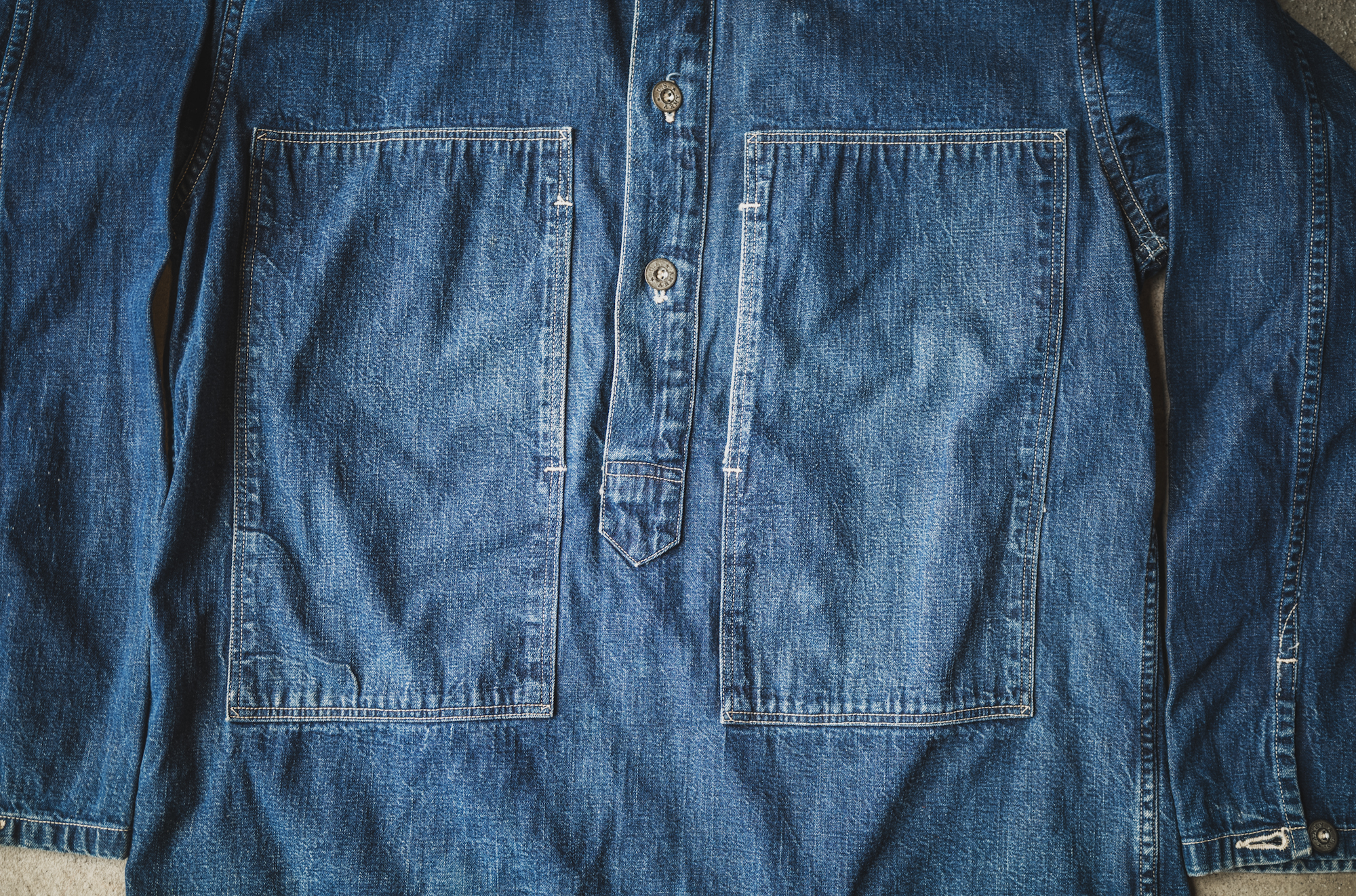 There was an item that we had been holding back on for that reason. We’ve owned the vintage one for a long time, and in fact, we even made a sample about 7 years ago. But for the reasons mentioned above, we shelved the project, thinking, “We already have the Seamen series…” That item was the US ARMY M-35 Pull Over Shirt. One day, when I picked up that sample again after a long time, for reasons I can’t explain, I felt an overwhelming urge to make it now.It was like flipping through an old photo album. The atmosphere from that time still lingers, and conversely, I felt that this is the right timing to release these shirts. When that happens, TCB moves quickly.
